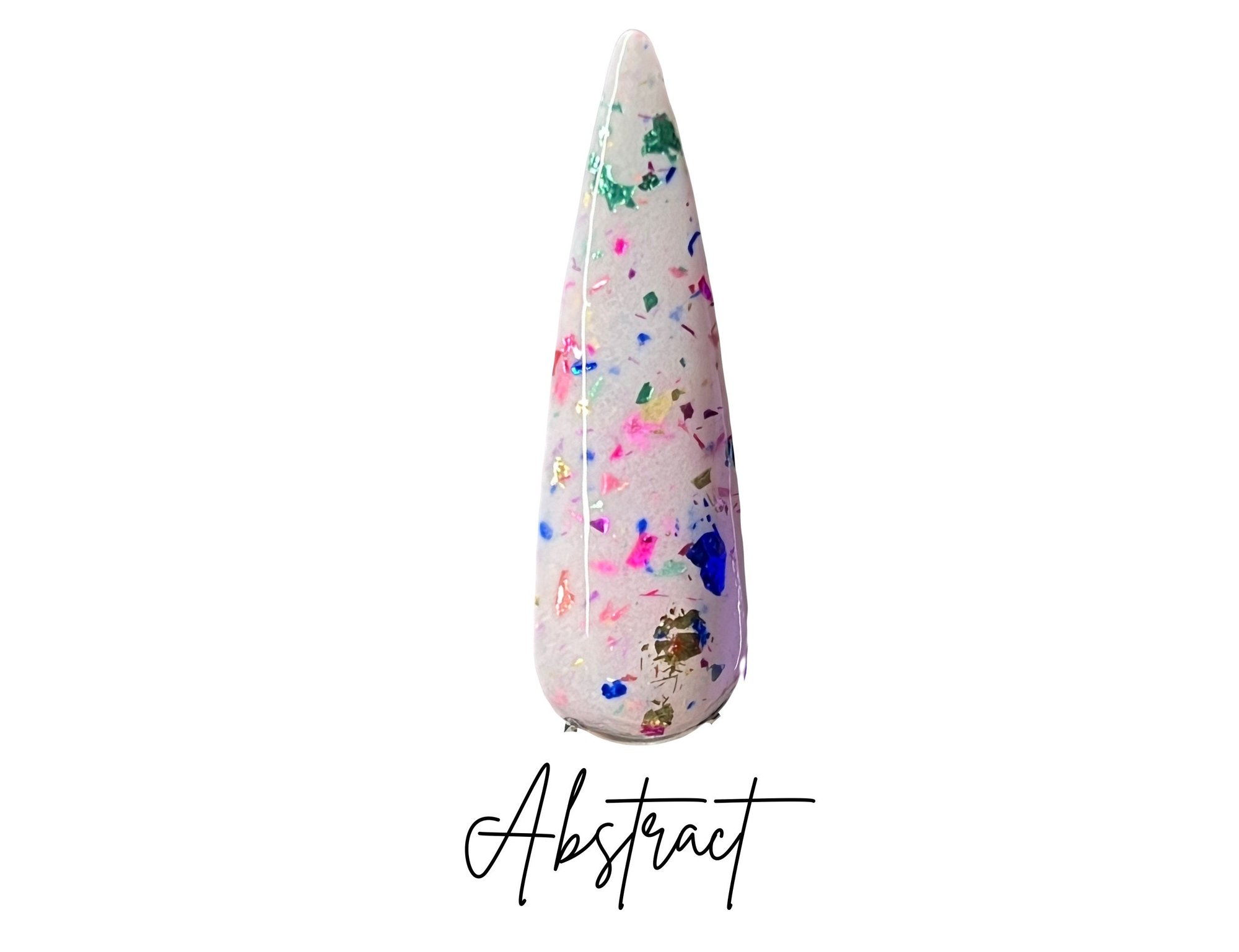 Abstract is a multi-colored foils set in a creamy white base! Each nail will look like it’s own piece of abstract art! It also glows white!
