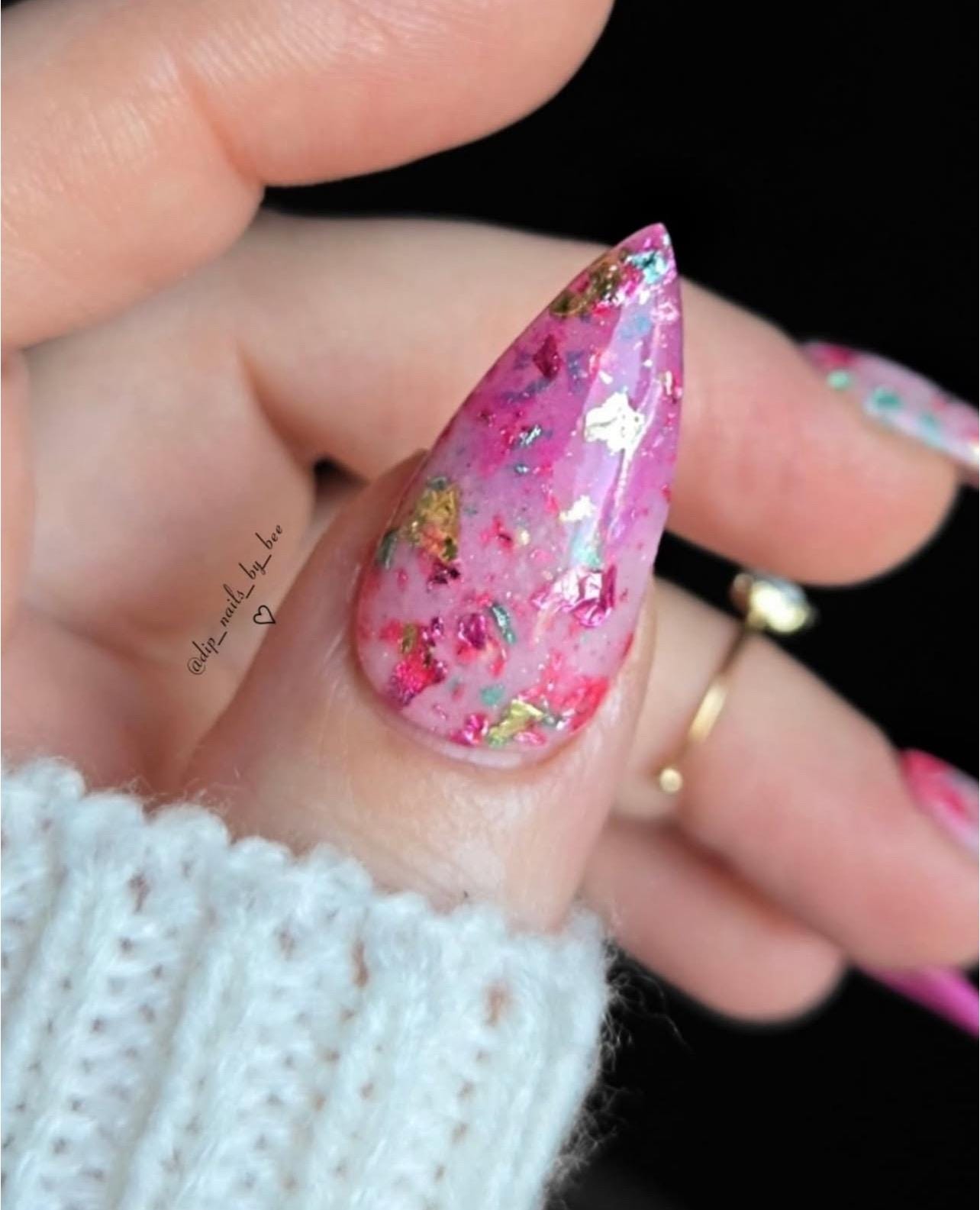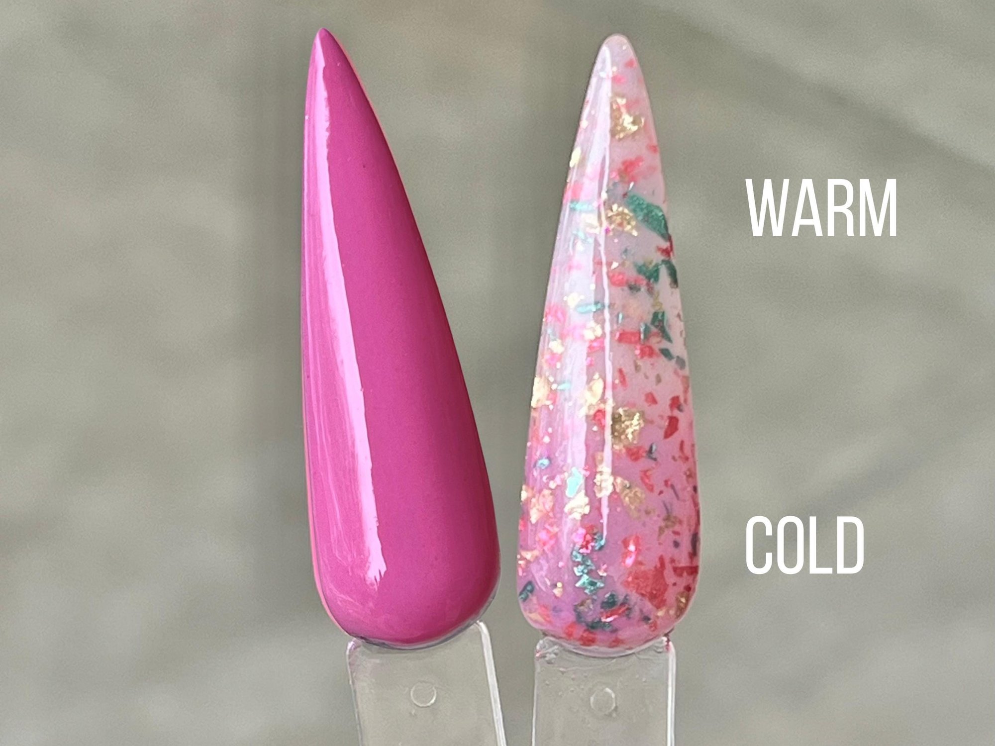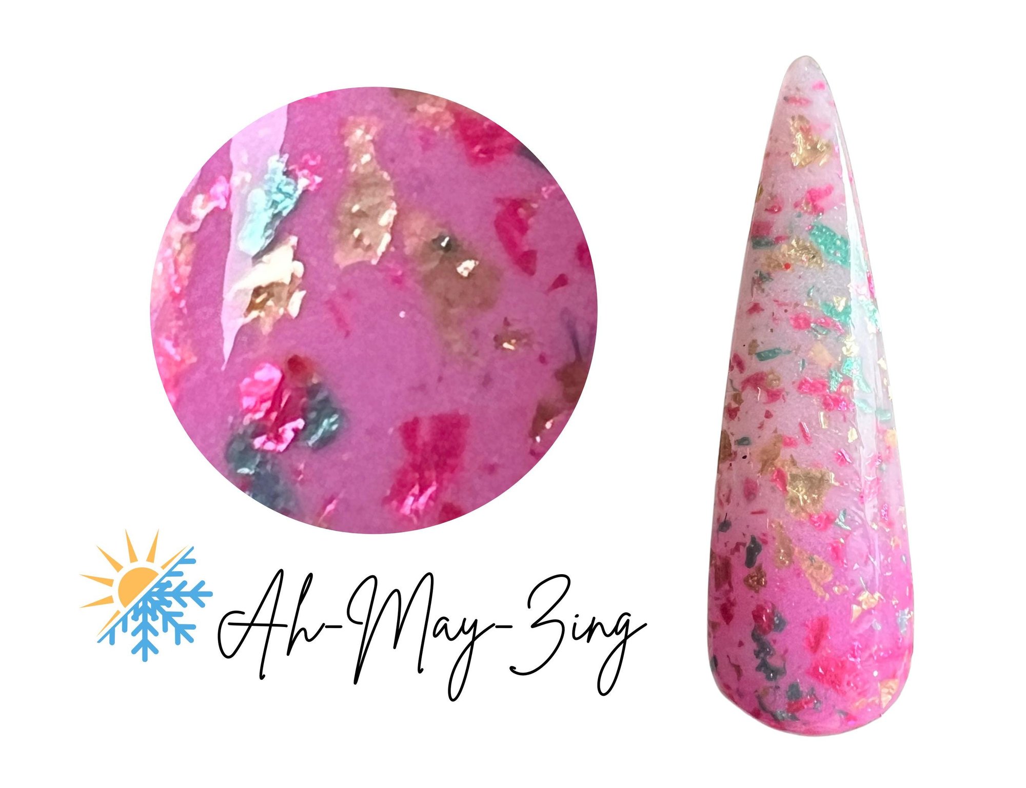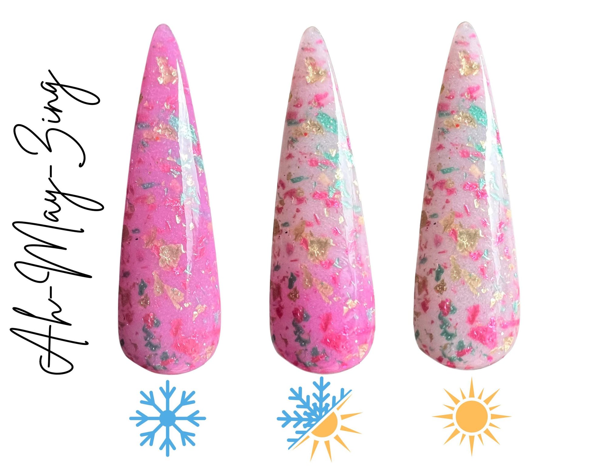 Ah-May-zing is a multi-colored foils set in a pink thermal base! This powder changes from a dark pink when cold to soft pink when warm.