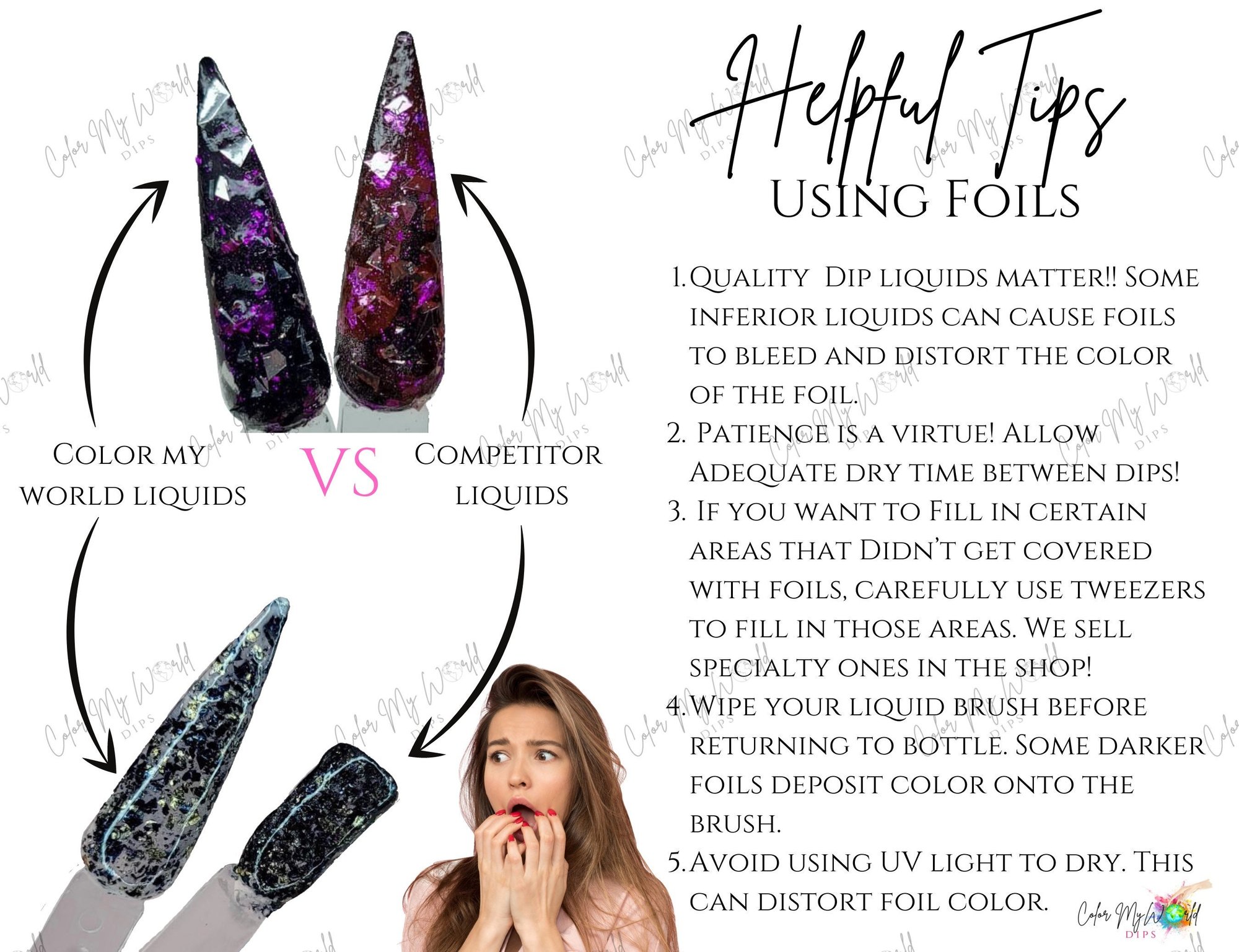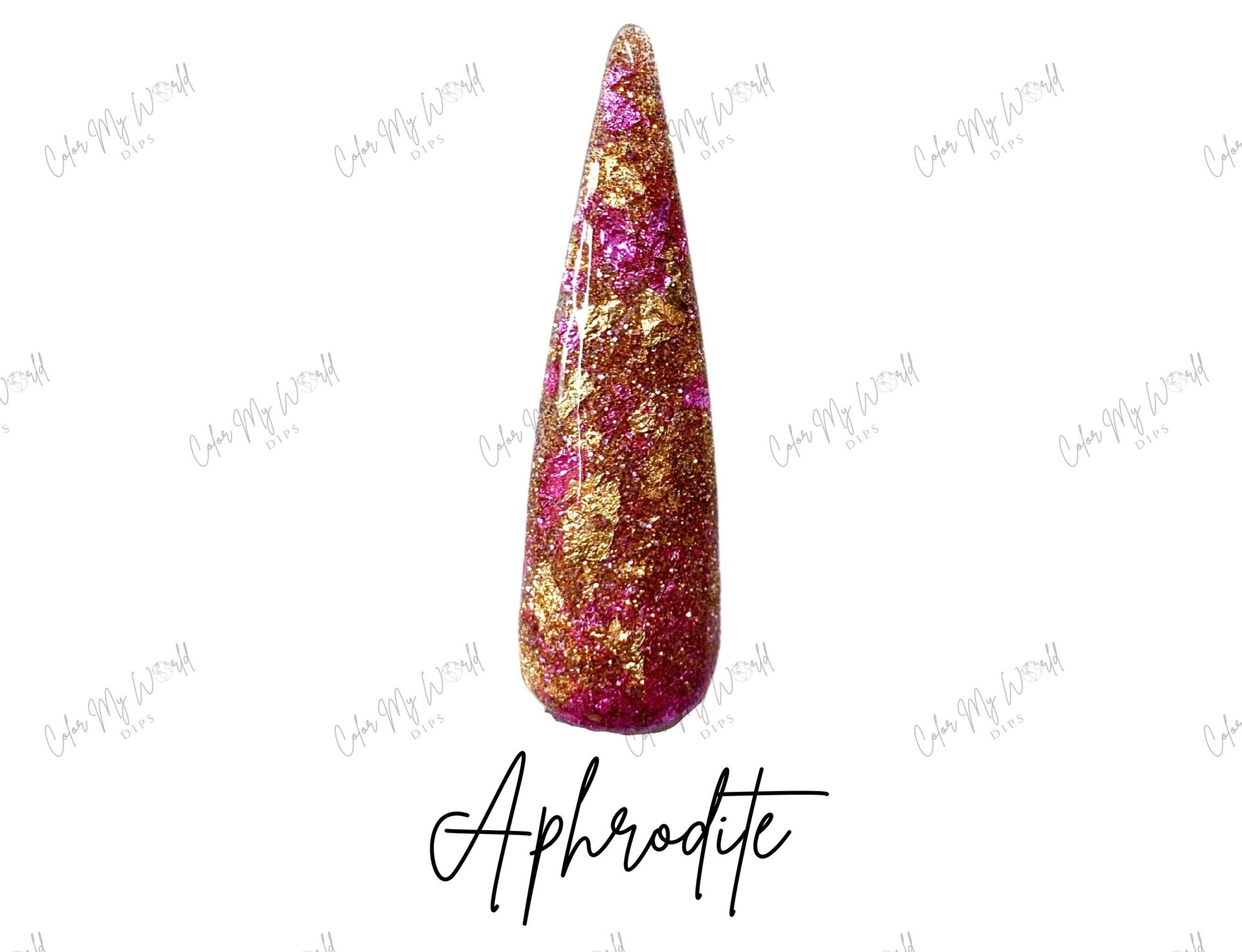 This foil dip powder features a gold glitter base with bright lilac and gold foils. This unique foil dip is so beautiful we of course had to name it after the goddess!