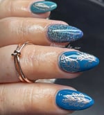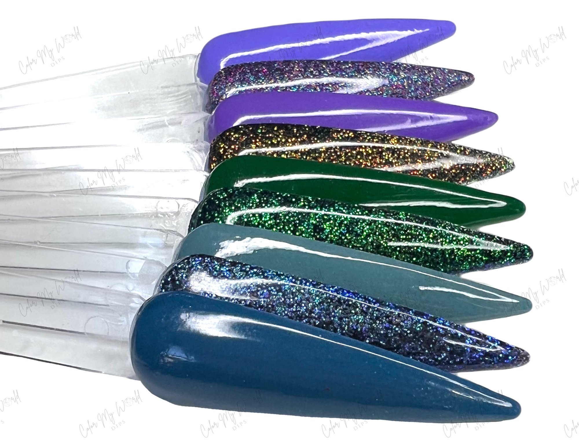 “Avatar” is a fine chameleon glitter dip! This sparkly stunner color shifts from blue to dark teal.