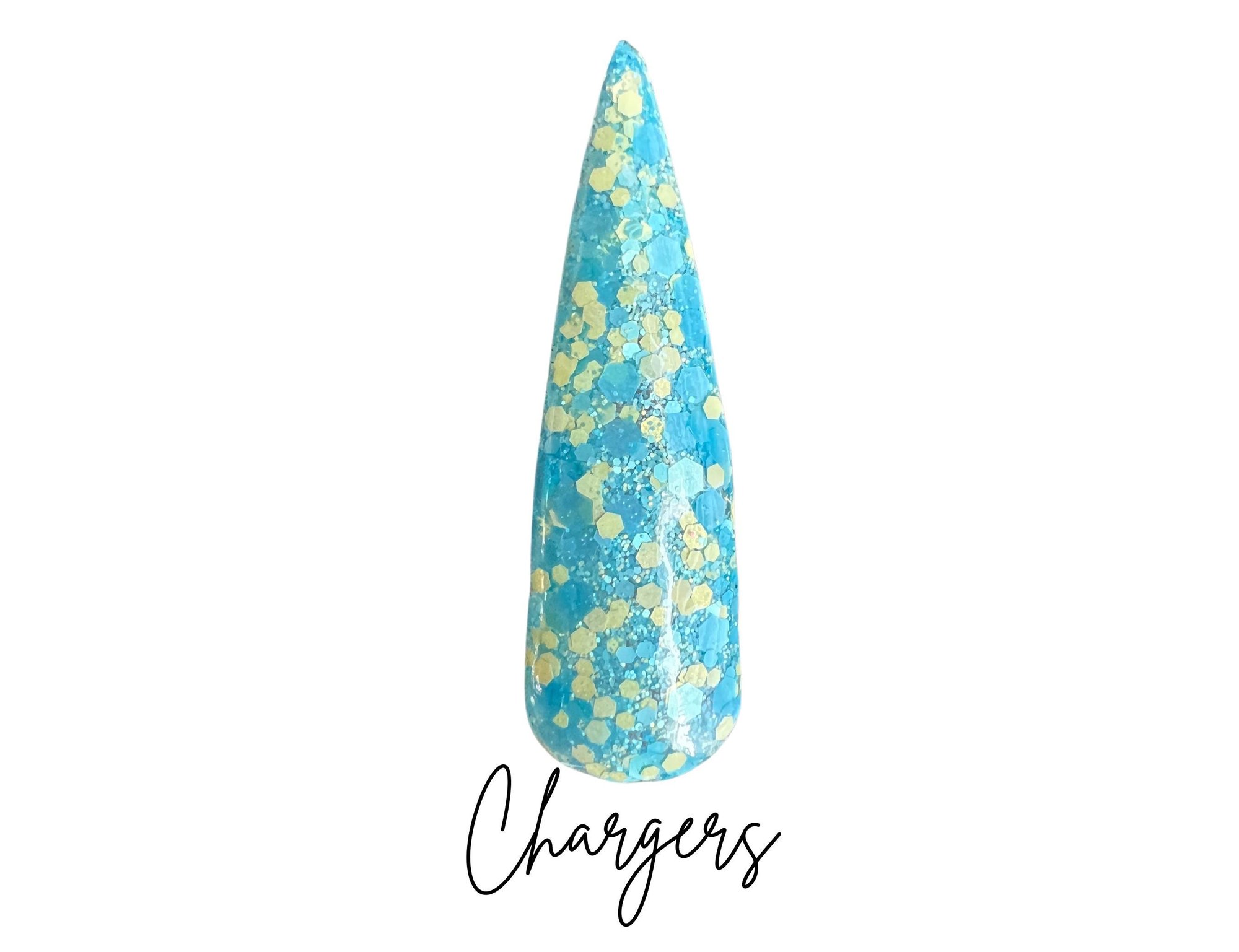 "Chargers" is a blue and yellow chunky glitter mix that is perfect to show you're a true Charger Fan.