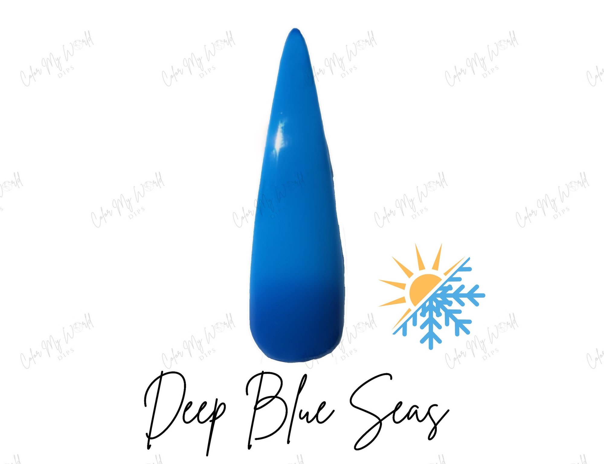 Part of our Thermal Dip Powder Collection! This color changing dip powder reacts to changes in temperature. This thermal changes from a bright blue when it’s cold to a light blue when it’s hot.