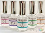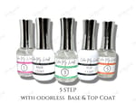 đź’•5 bottles total: 1 15ml of each step. Primer, base coat, activator, top coat and brush saver. Odorless base and top available as well!