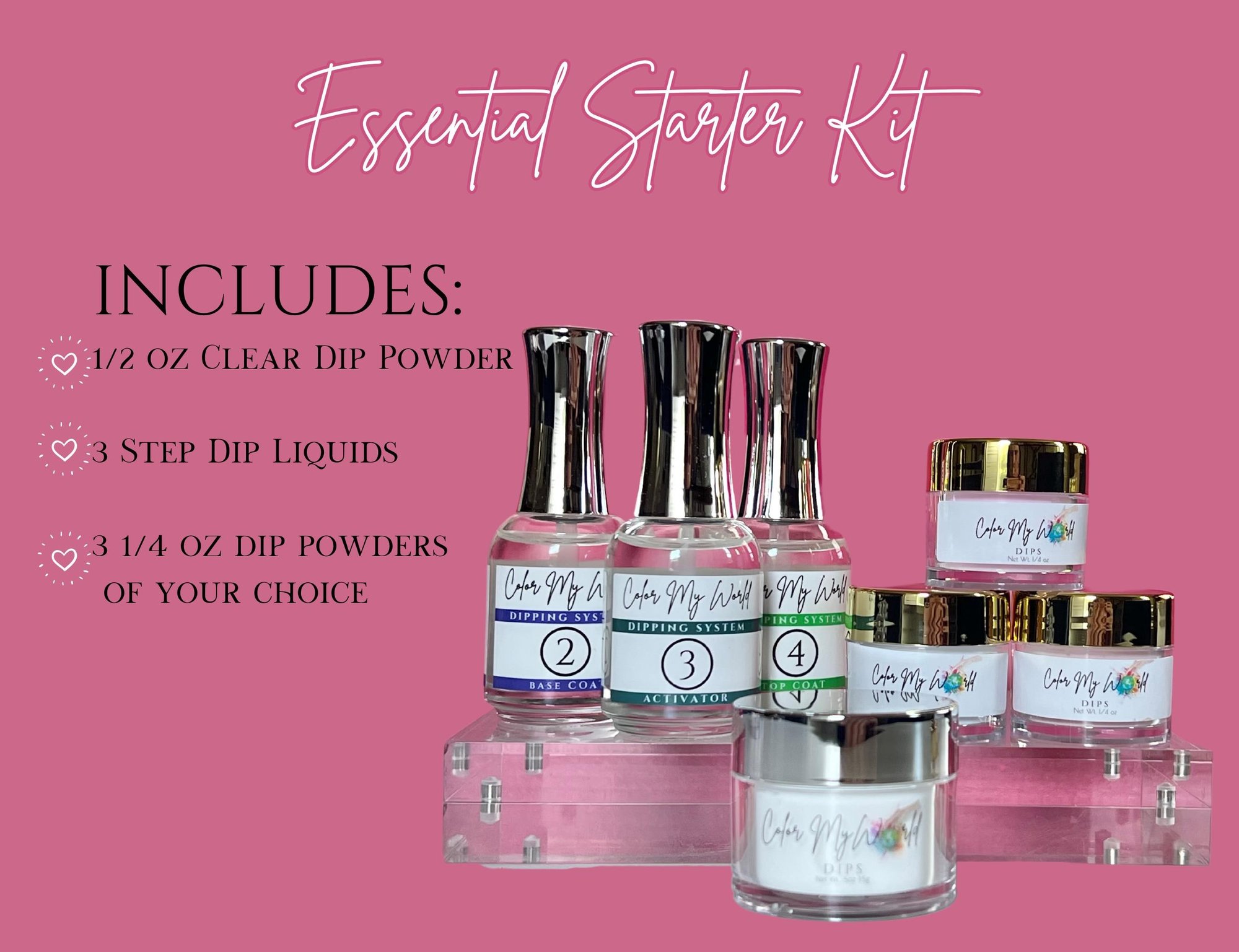 Choose any dip from our shop to include in your kit! At checkout, under the order summary you will see a link to leave a "note or instructions." Please list the names of your dip powder selections there.