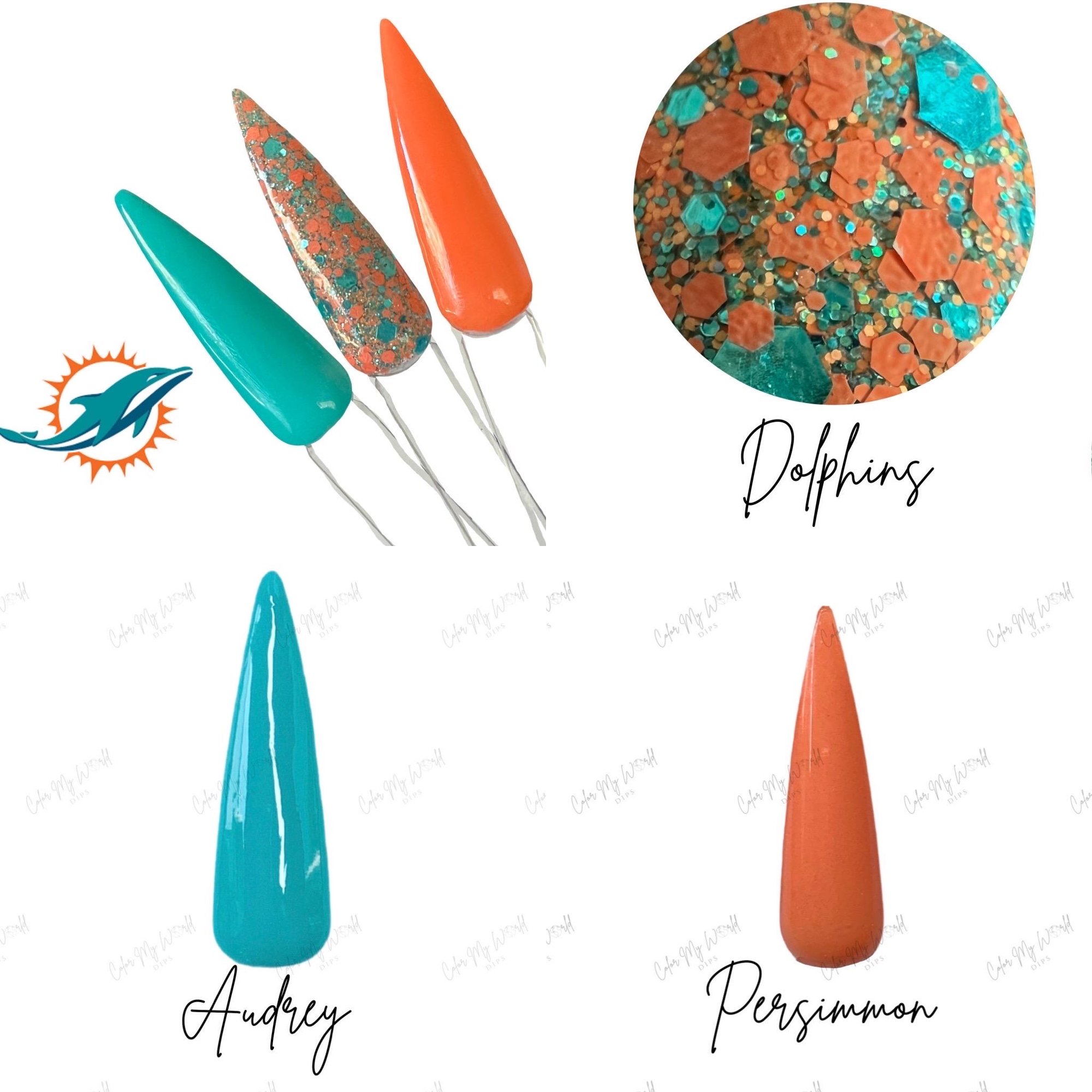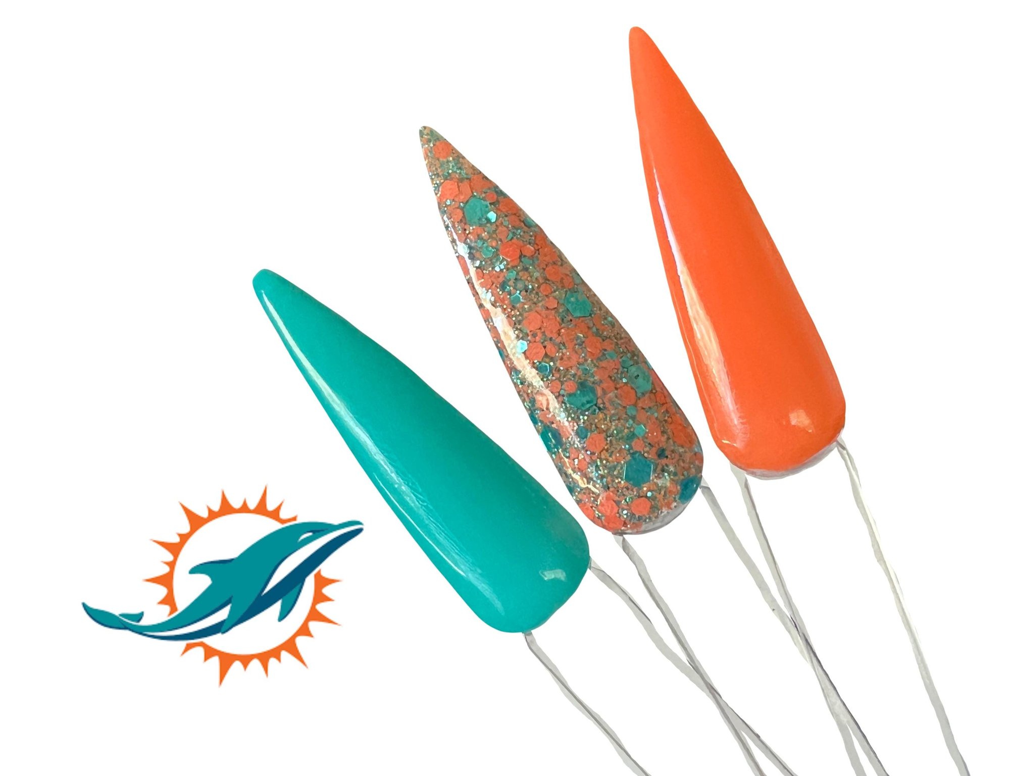 "Dolphins" is a teal and orange chunky glitter mix that is perfect to show you're a true Dolphins Fan.