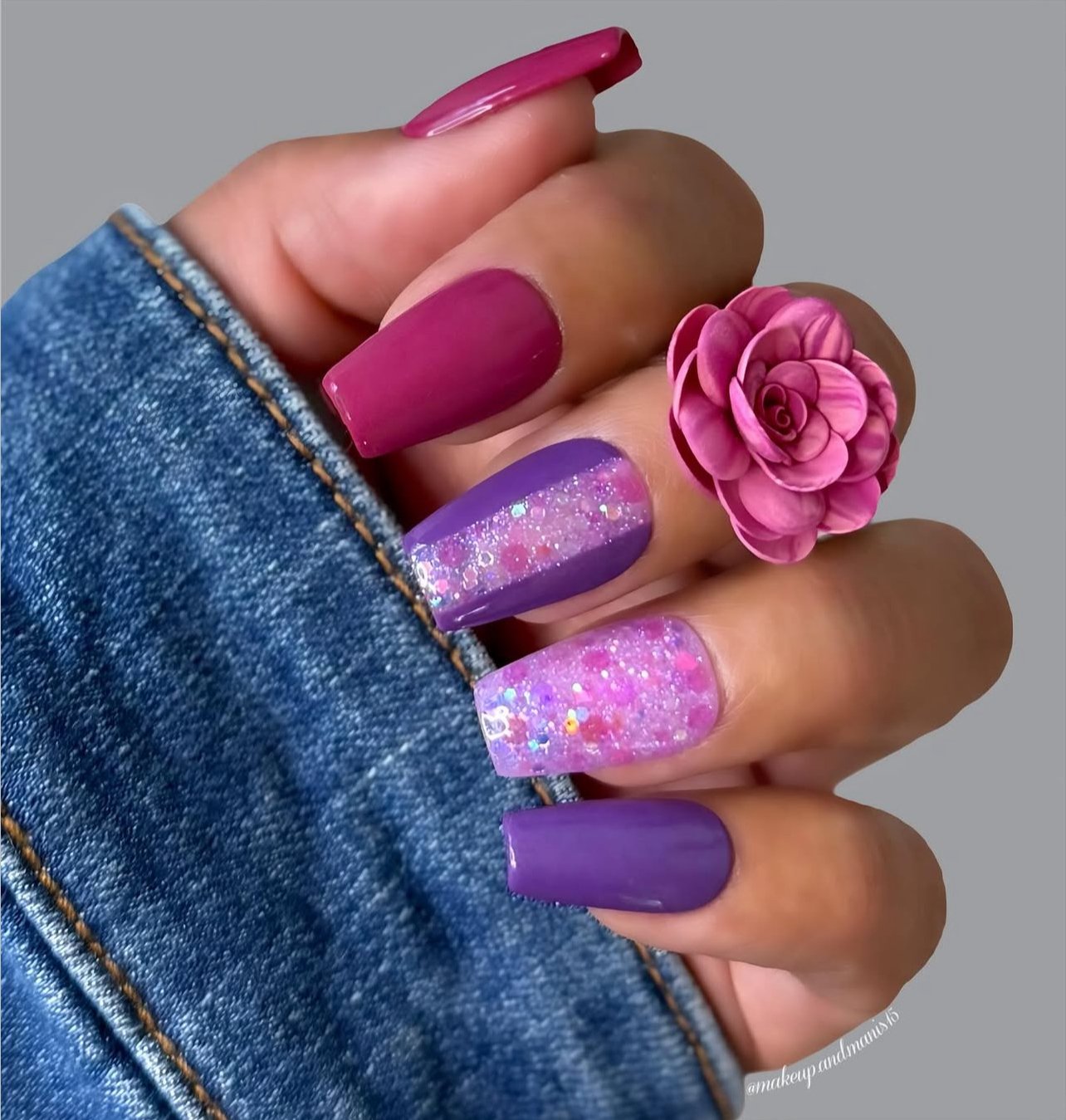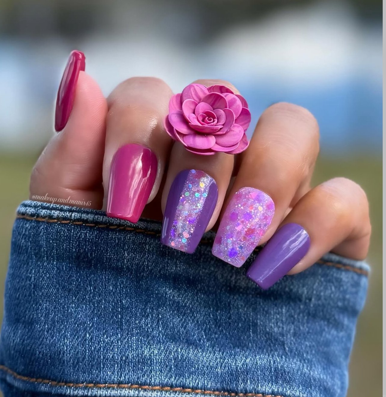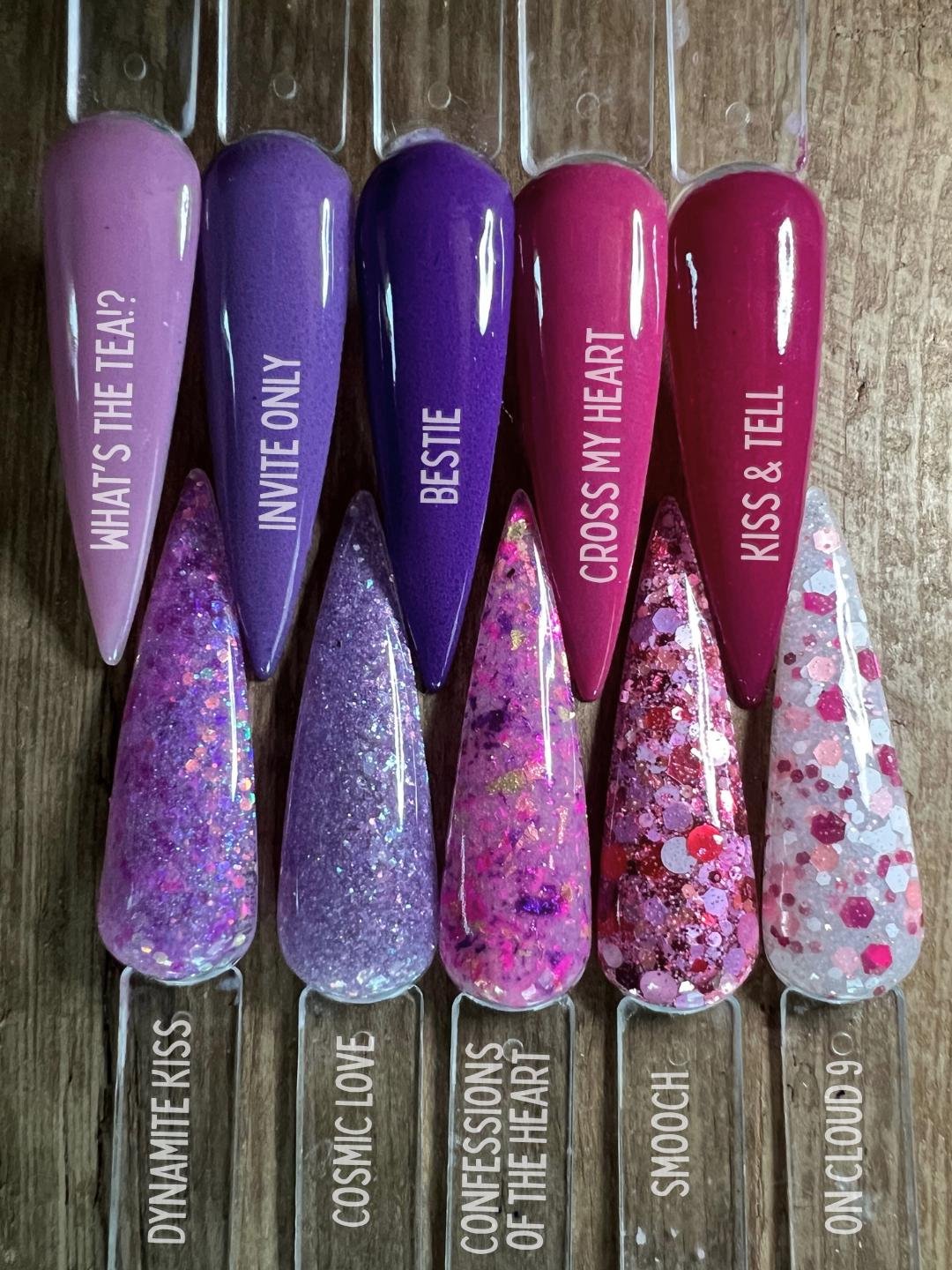 DYNAMITE KISS- pink and purple glitter nails, diy nails, dip powder, nail dip powder, valentine n...