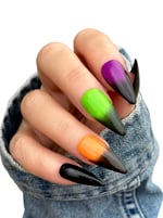 Our dip powders are sold in 1/4 oz, 1/2 oz or full size 1 oz jars and are available in a variety colors and glitters. All of our powders are MMA free, non-yellowing and made with high quality cosmetic grade ingredients. All swatches are dipped 3 times and then followed with a clear dip powder coat. All swatches use our Dipping System liquids. For best results, we recommend following the same process. Our Dip powder nails can last anywhere from 2-4 weeks!