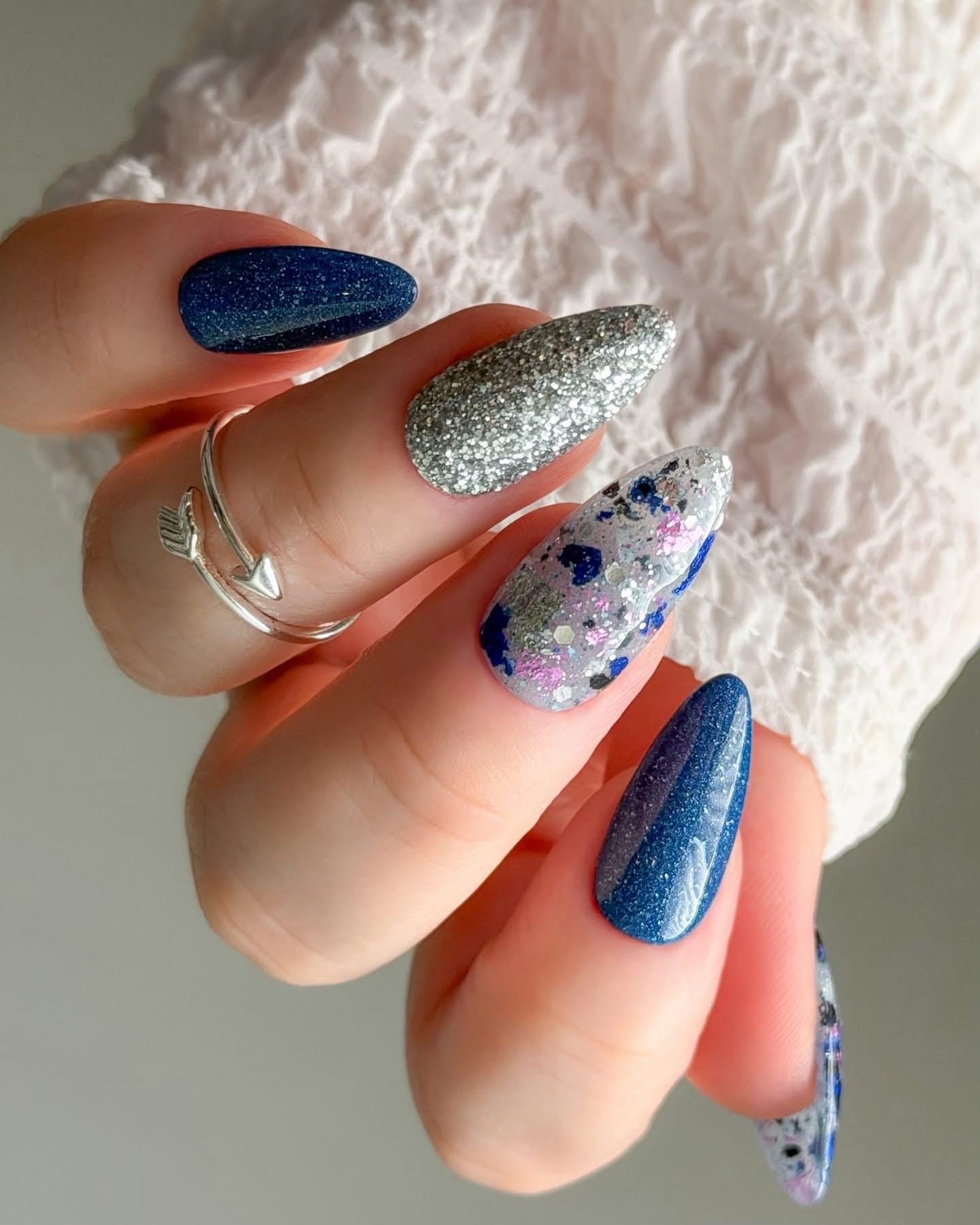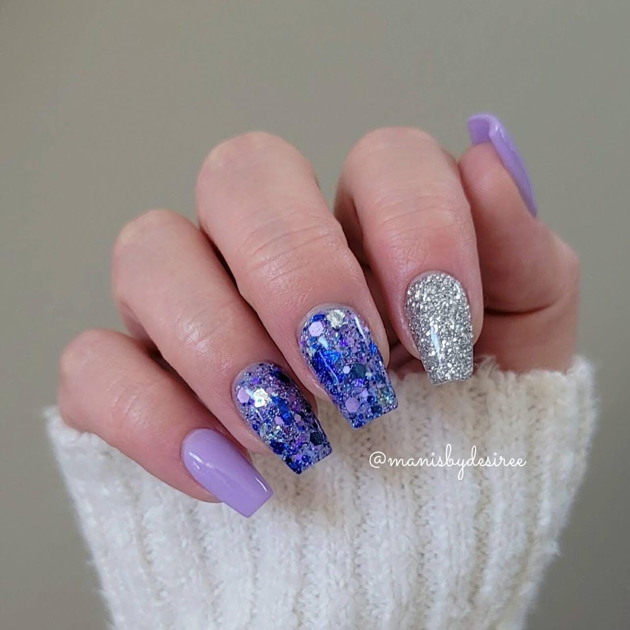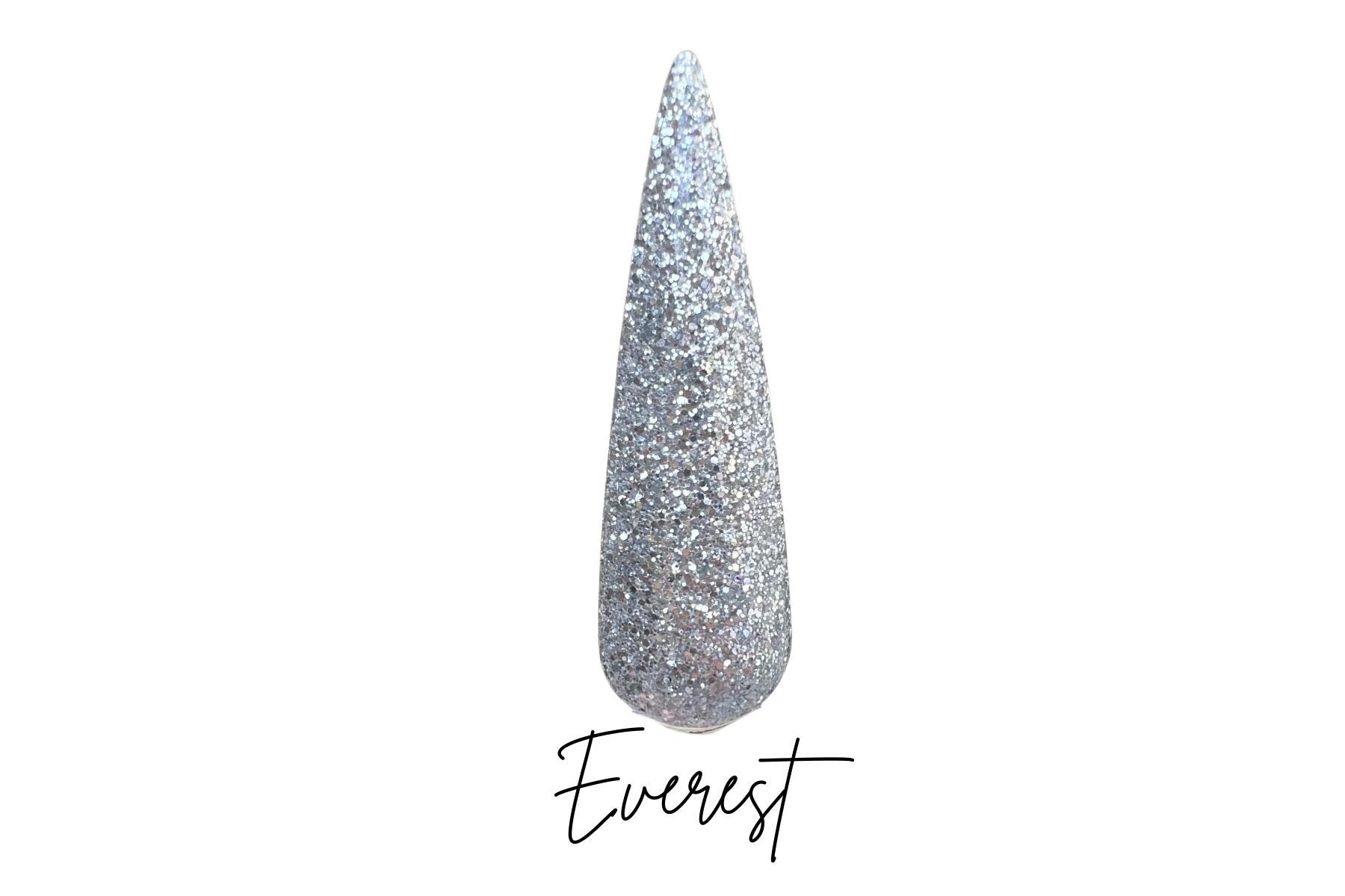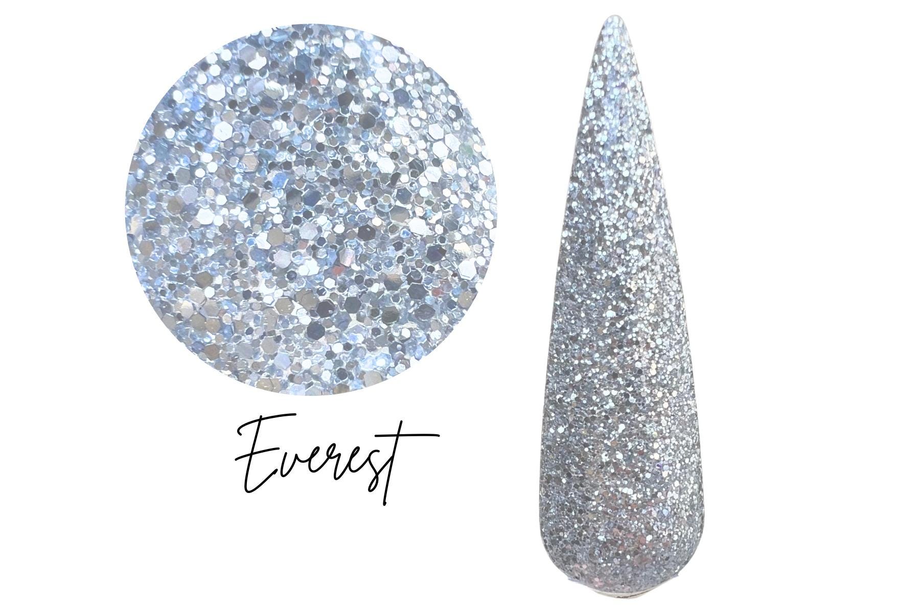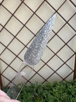 Fine silver glitter dip powder.