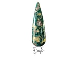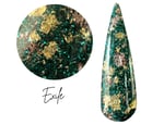 This foil dip powder features is set in a dark green glitter base with brown and gold foils.