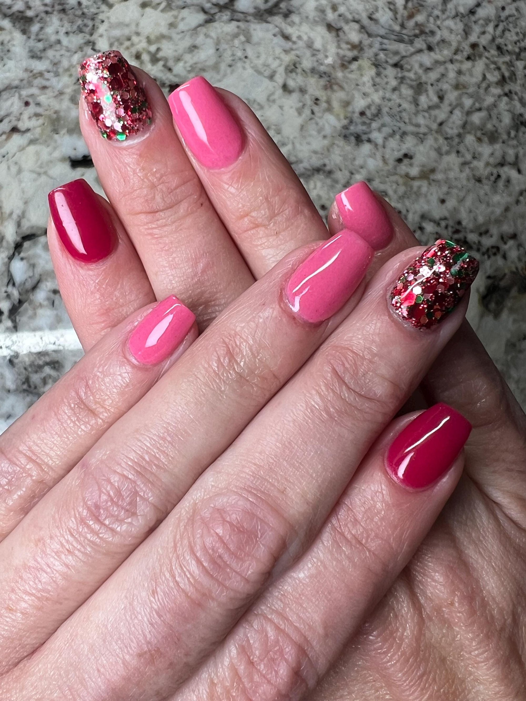 Our dip powders are sold in 1/4 oz, 1/2 oz or full size 1 oz jars and are available in a variety colors and glitters. All of our powders are MMA free, non-yellowing and made with high quality cosmetic grade ingredients. All swatches are dipped 3 times and then followed with a clear dip powder coat. All swatches use our Dipping System liquids. For best results, we recommend following the same process. Our Dip powder nails can last anywhere from 2-4 weeks!