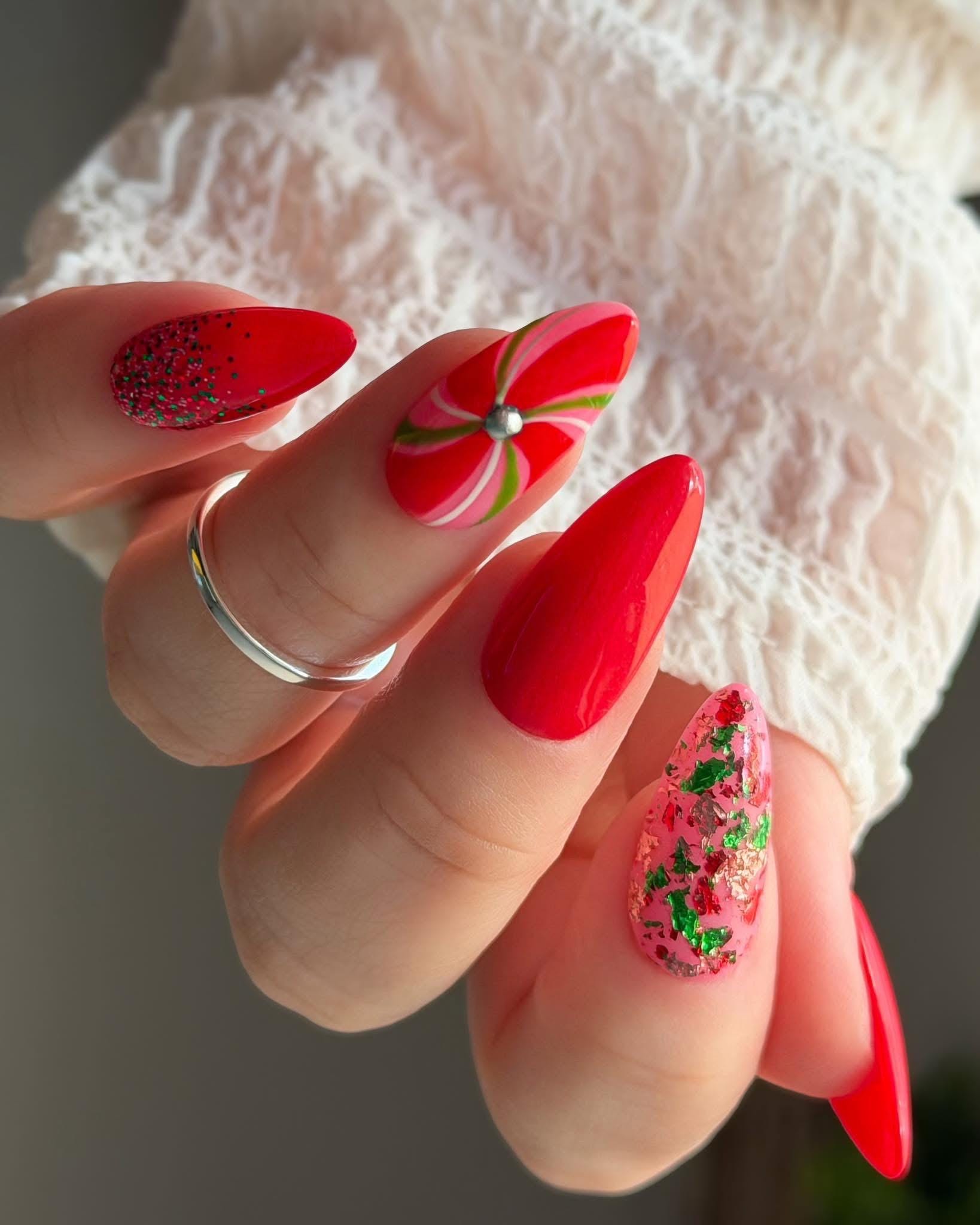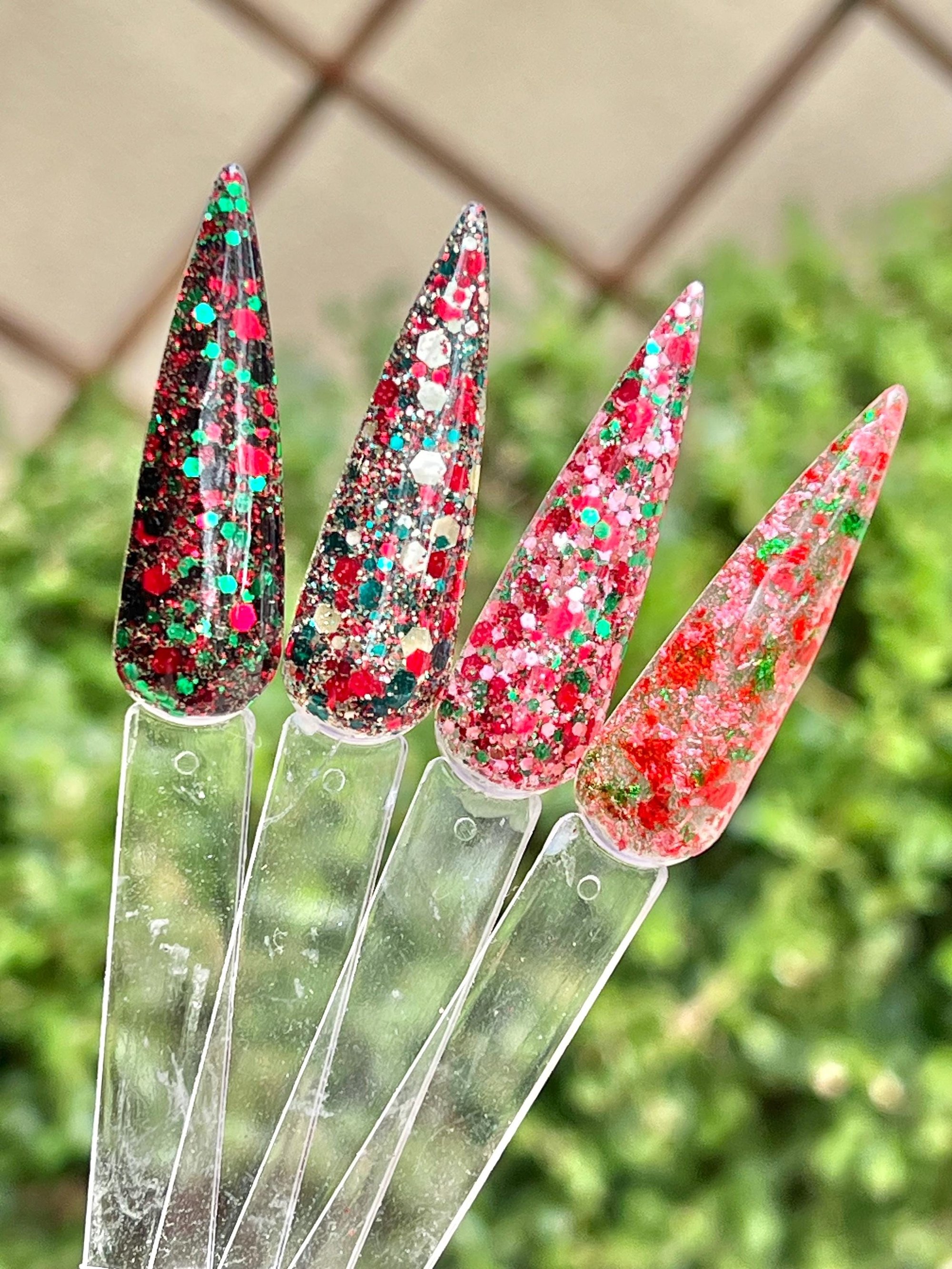 Holiday Spirit is a gorgeous red, pink & green foil dip set in a clear base! Versatile: Layer it over a solid dip or wear it as is!