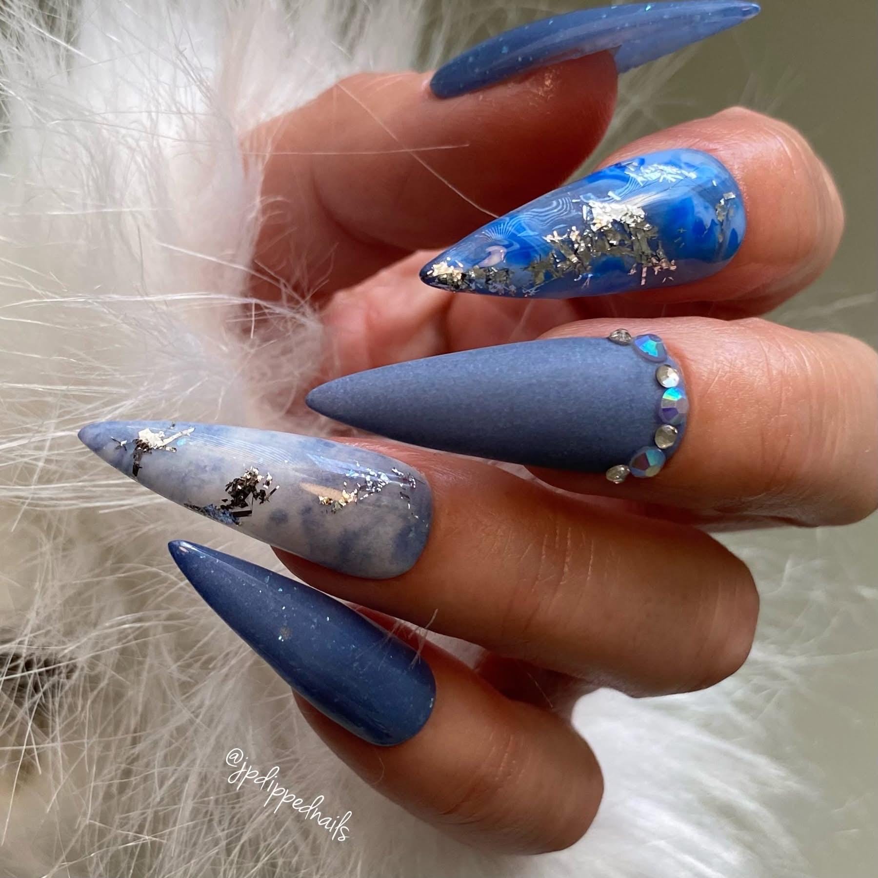 “Jack Frost” is a blue shimmer dip powder.