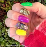 Our dip powders are sold in 1/4 oz, 1/2 oz or full size 1 oz jars and are available in a variety colors and glitters. All of our powders are MMA free, non-yellowing and made with high quality cosmetic grade ingredients. All swatches are dipped 3 times and then followed with a clear dip powder coat. All swatches use our Dipping System liquids. For best results, we recommend following the same process. Our Dip powder nails can last anywhere from 2-4 weeks!