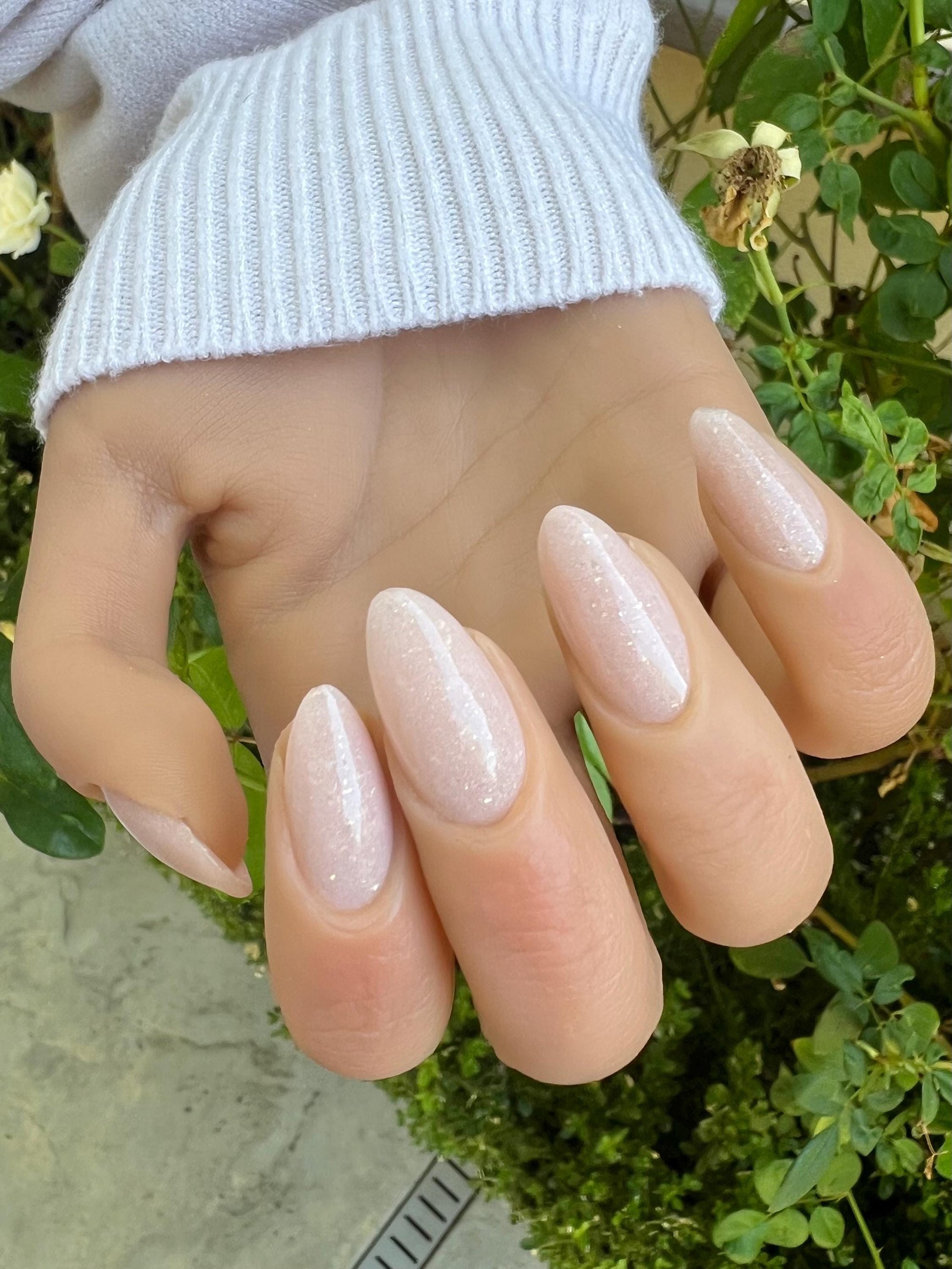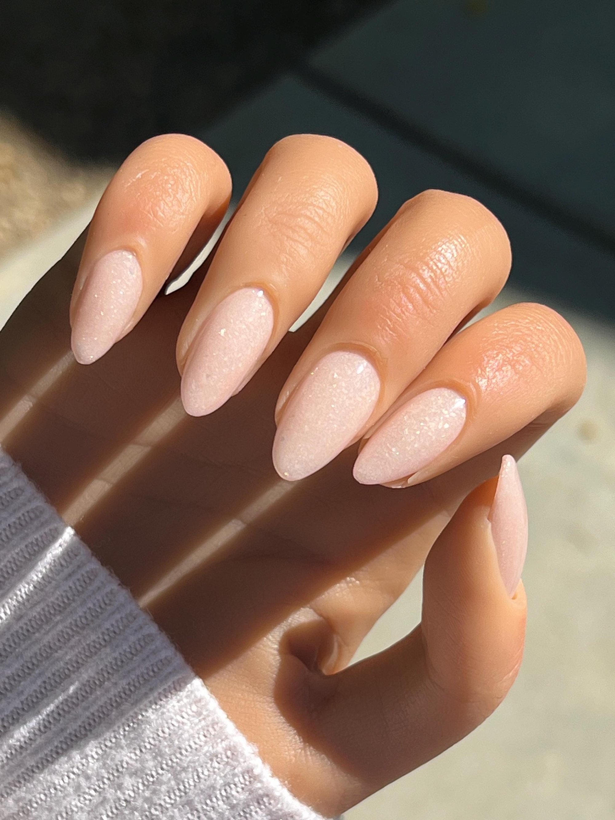 Milk & Honey is an elegant ivory dips with golden flakies that cast a peachy/pink tone!