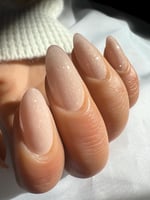 ✨STEP 4: Apply another thin layer of Base Coat to entire nail, avoiding the cuticle. Dip nail at an angle into color powder of choice. Tap nail to help excess powder off. Wait a moment then brush off excess powder with a fluffy brush. Repeat process 2 more times or until desired opacity is achieved.