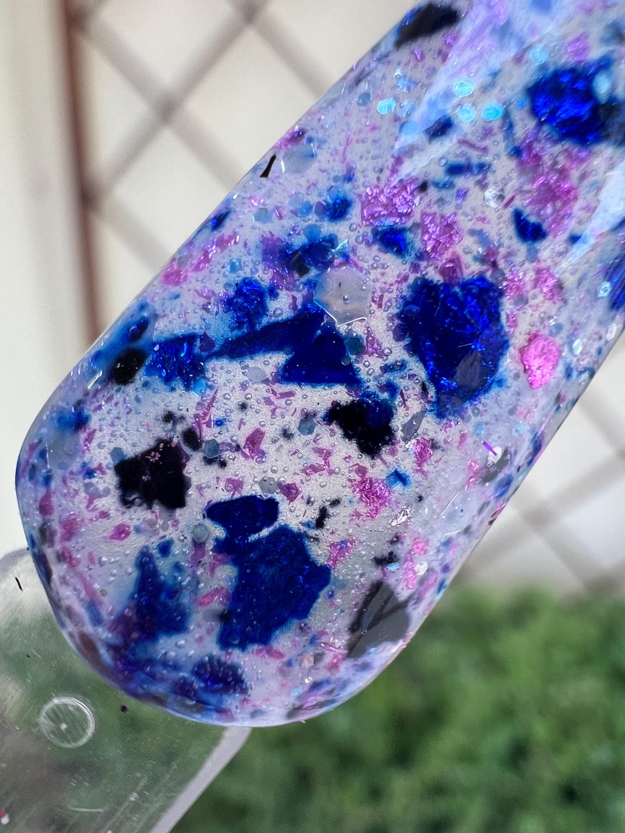 A gorgeous black, blue, silver and magenta foil dip set in a icy base!