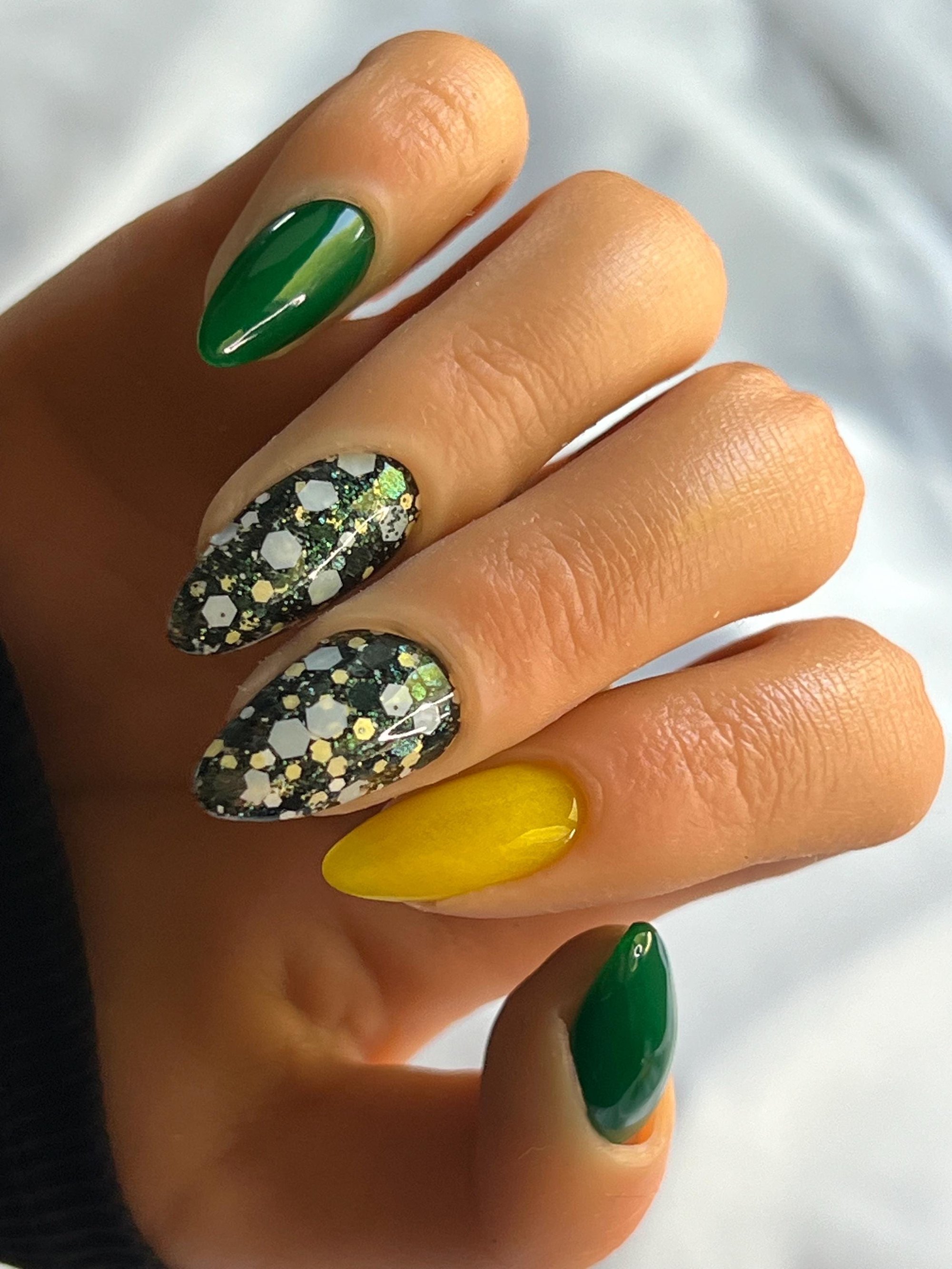 "Packers" is a green, white and yellow chunky glitter mix that is perfect to show you're a true Cheesehead.