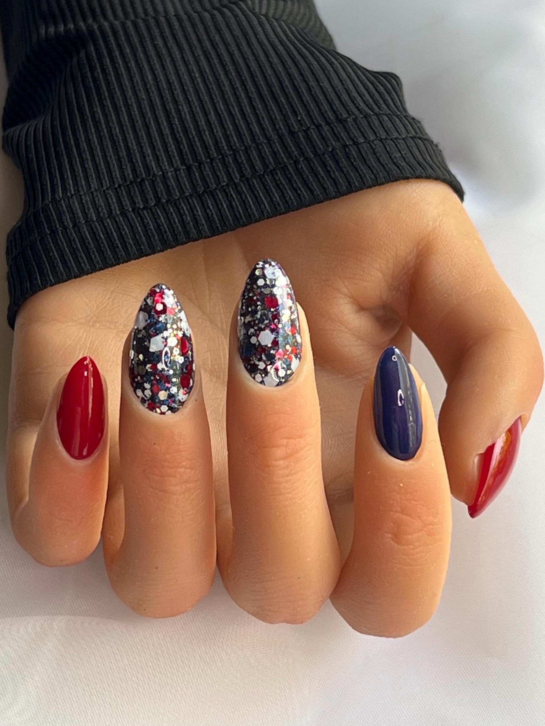 "Patriots" is a blue, red & white chunky glitter mix that is perfect to show you're a true Pats Fan.