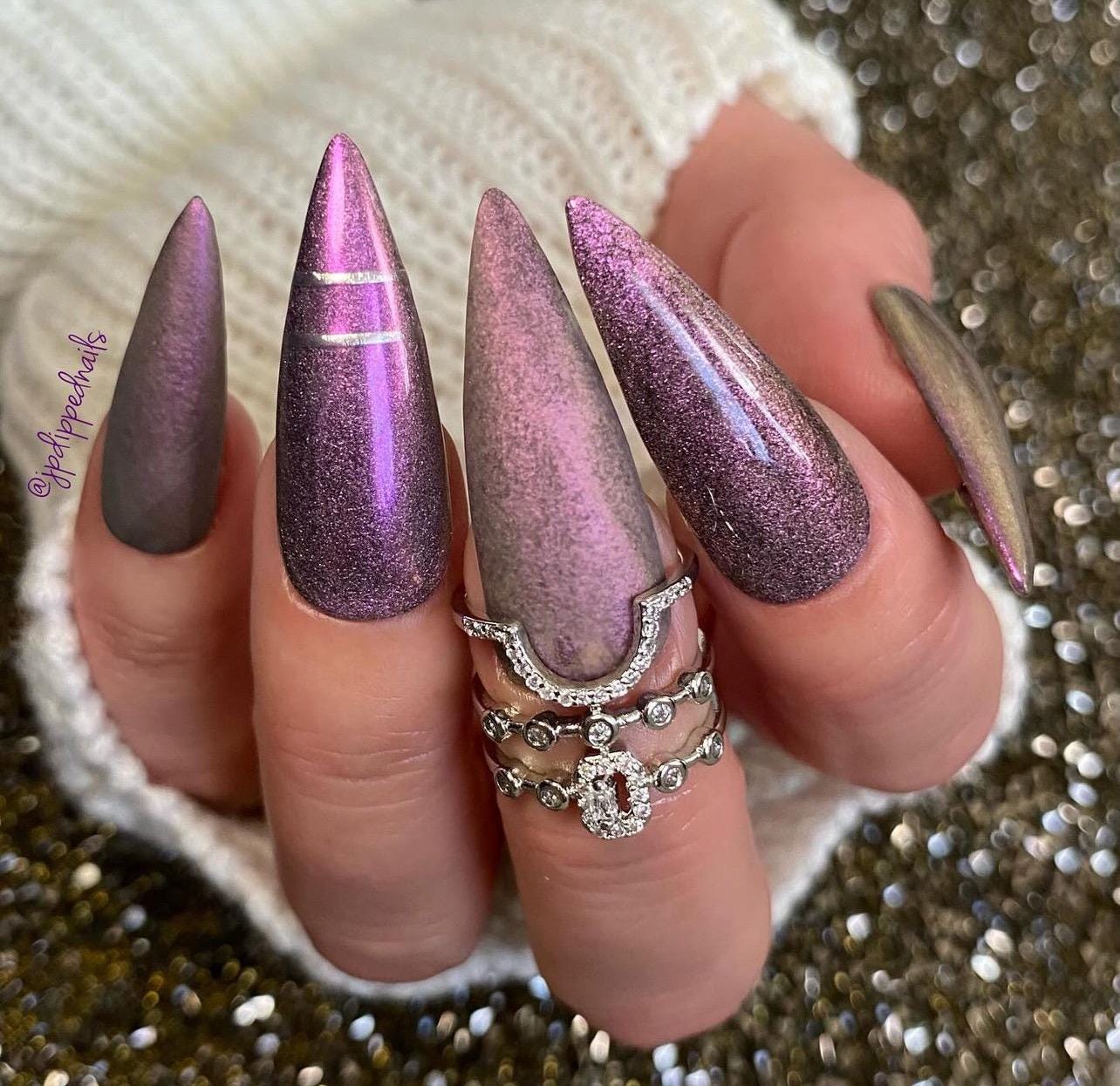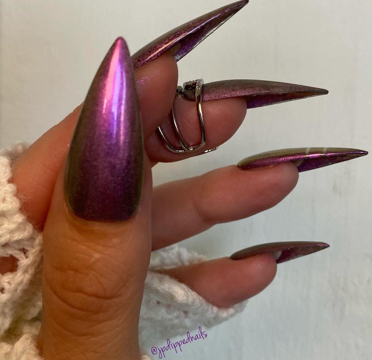 Our chrome* dip powders are so versatile! When you choose to dip, the color is a unique intergalactic effect or used as intended, as a chrome* powder! The possibilities are endless with this dip!