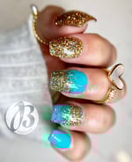 ✨STEP 4: Apply another thin layer of Base Coat to entire nail, avoiding the cuticle. Dip nail at an angle into color powder of choice. Tap nail to help excess powder off. Wait a moment then brush off excess powder with a fluffy brush. Repeat process 2 more times or until desired opacity is achieved.