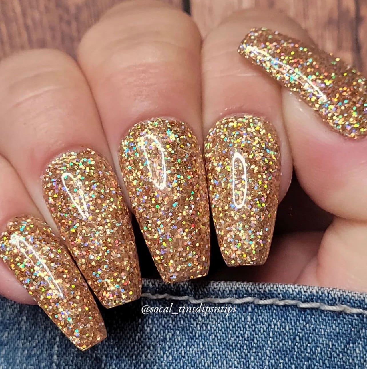 Our dip powders are sold in 1/4 oz, 1/2 oz or full size 1 oz jars and are available in a variety colors and glitters. All of our powders are MMA free, non-yellowing and made with high quality cosmetic grade ingredients. All swatches are dipped 3 times and then followed with a clear dip powder coat. All swatches use our Dipping System liquids. For best results, we recommend following the same process. Our Dip powder nails can last anywhere from 2-4 weeks!