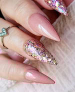 Our dip powders are sold in 1/4 oz, 1/2 oz or full size 1 oz jars and are available in a variety colors and glitters. All of our powders are MMA free, non-yellowing and made with high quality cosmetic grade ingredients. All swatches are dipped 3 times and then followed with a clear dip powder coat. All swatches use our Dipping System liquids. For best results, we recommend following the same process. Our Dip powder nails can last anywhere from 2-4 weeks!
