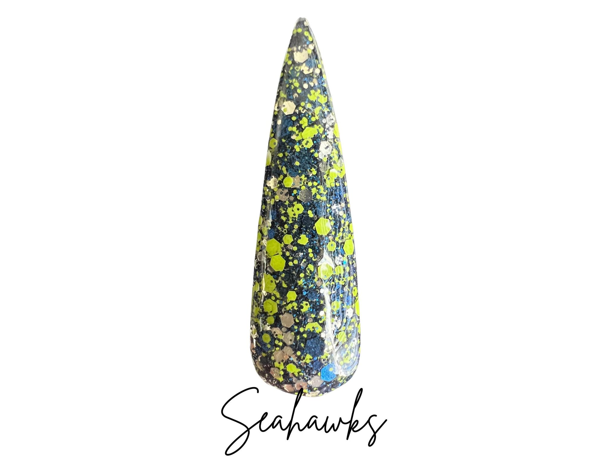 "Seahawks" is a blue, green & silver chunky glitter mix that is perfect to show you're a 12th Man.