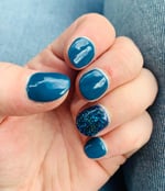 ✨STEP 4: Apply another thin layer of Base Coat to entire nail, avoiding the cuticle. Dip nail at an angle into color powder of choice. Tap nail to help excess powder off. Wait a moment then brush off excess powder with a fluffy brush. Repeat process 2 more times or until desired opacity is achieved.