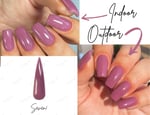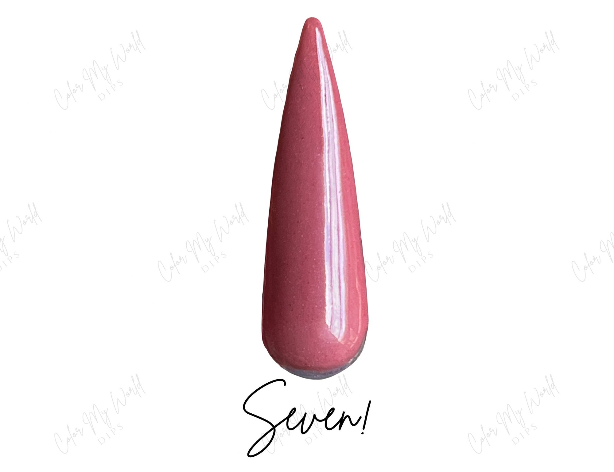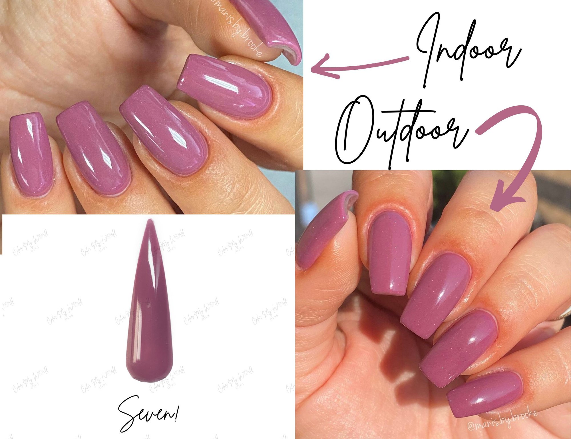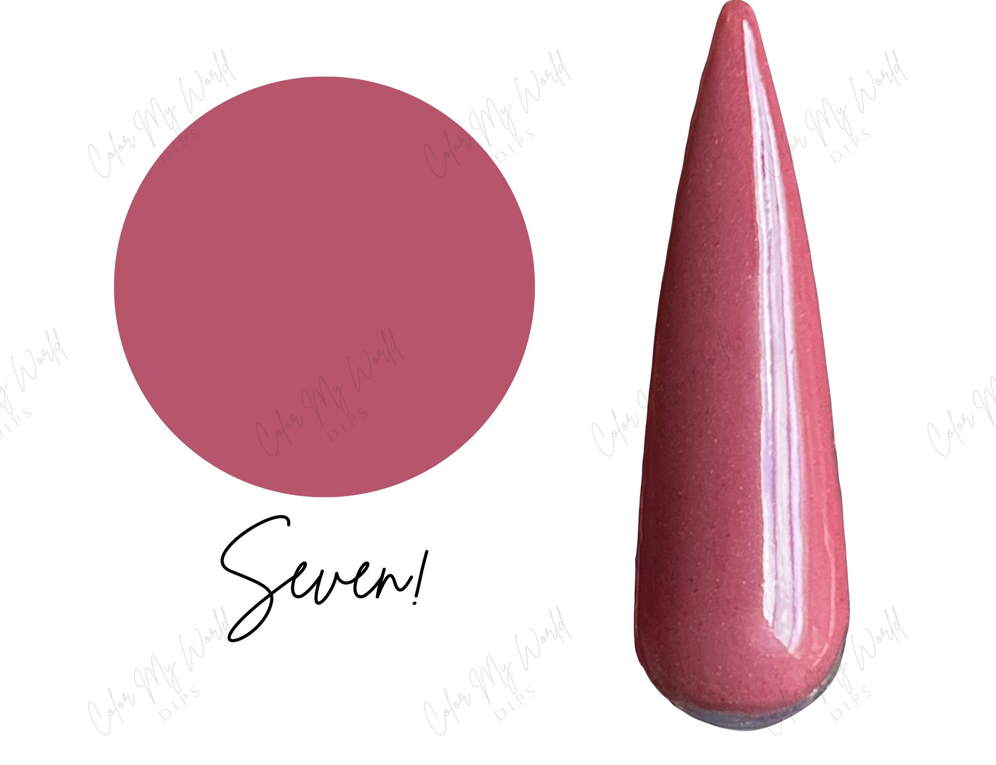 “Seven!” is a Friends inspired dip powder. This mulberry mauve is the perfect shade of purple to take you from summer to fall!