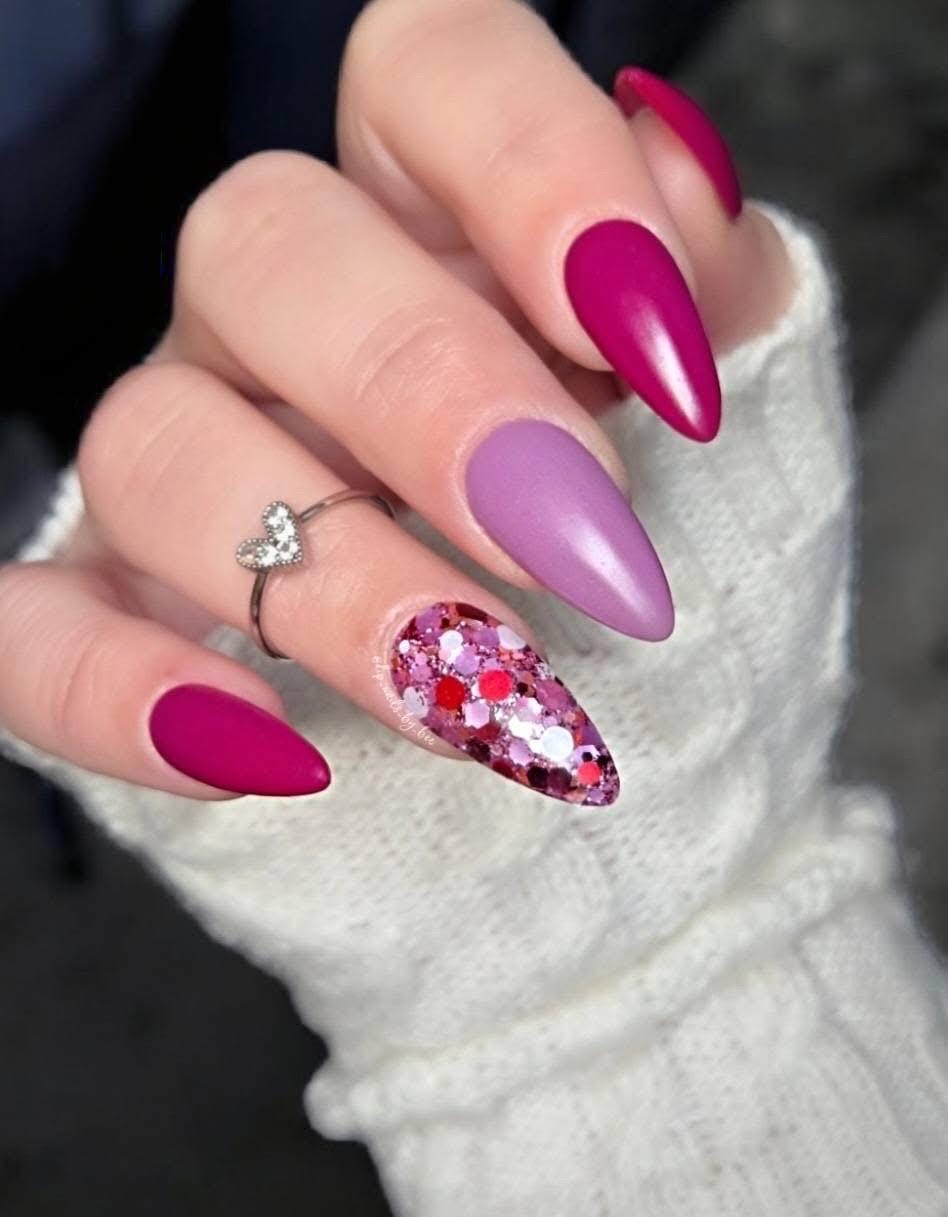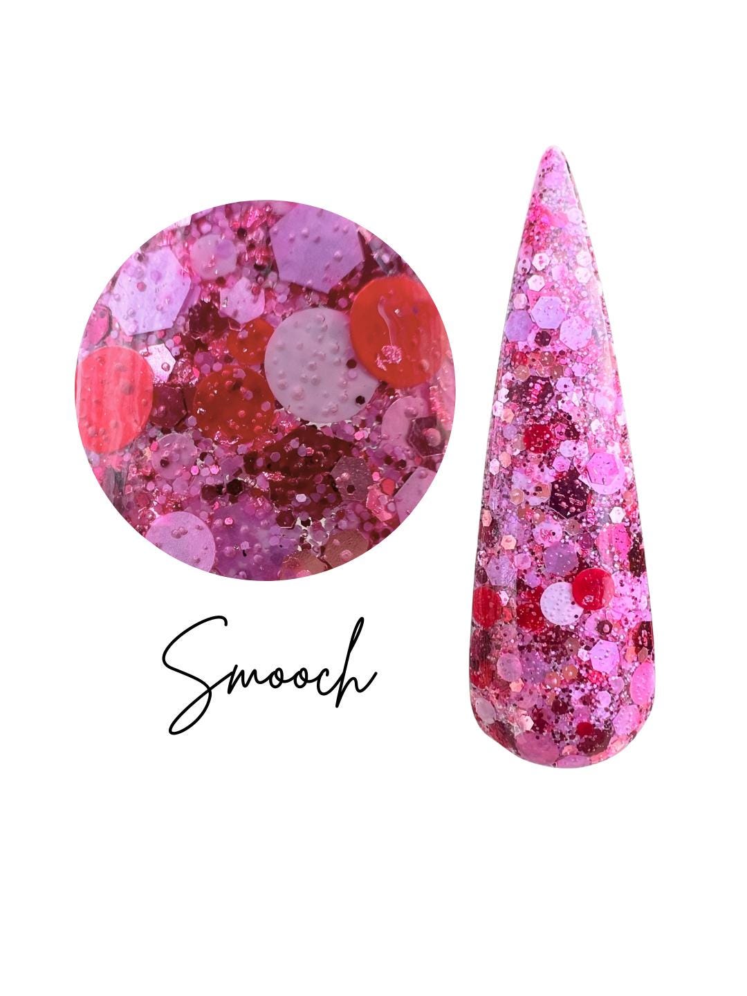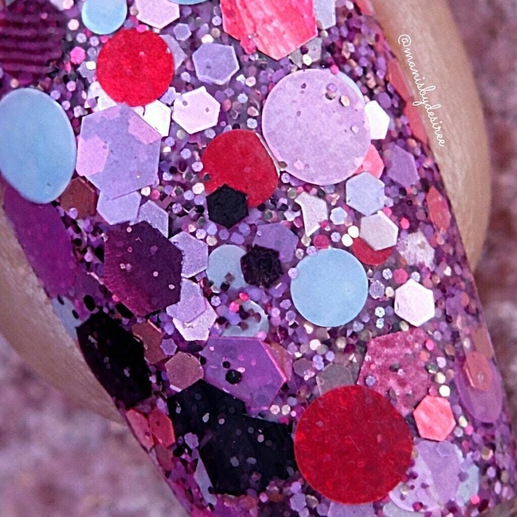 Smooch is chunky red, lilac and white glitter with lilac foils!