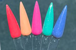 Our dip powders are sold in 1/4oz, 1/2 oz or full size 1 oz jars and are available in a variety colors and glitters. All of our powders are MMA free, non-yellowing and made with high quality cosmetic grade ingredients. All swatches are dipped 3 times and then followed with a clear dip powder coat. All swatches use our Dipping System liquids. For best results, we recommend following the same process. Our Dip powder nails can last anywhere from 2-4 weeks!
