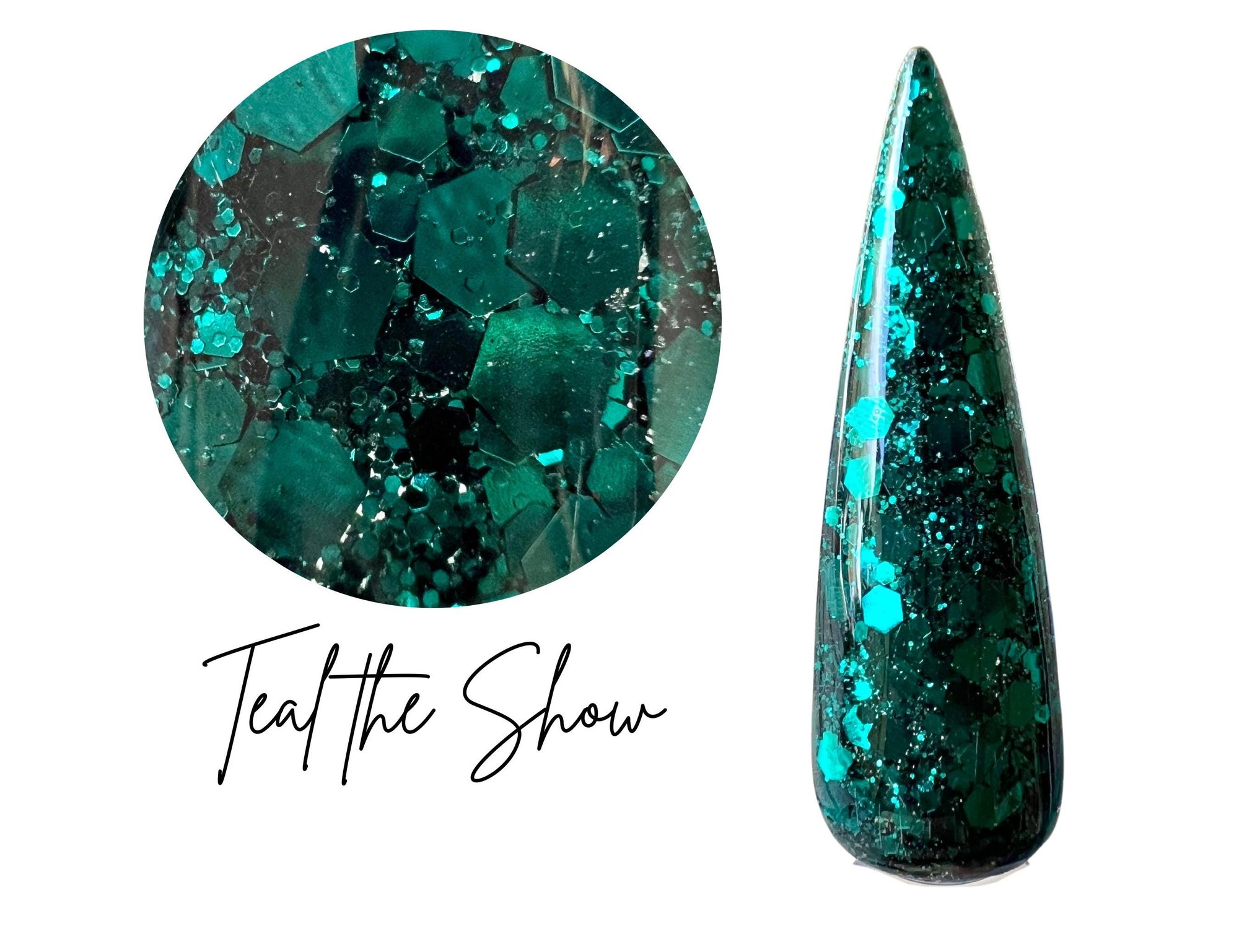 Teal the Show is a chunky dark teal glitter. This glitter is the chunky version of our popular fine glitter “Hallowthankmas”