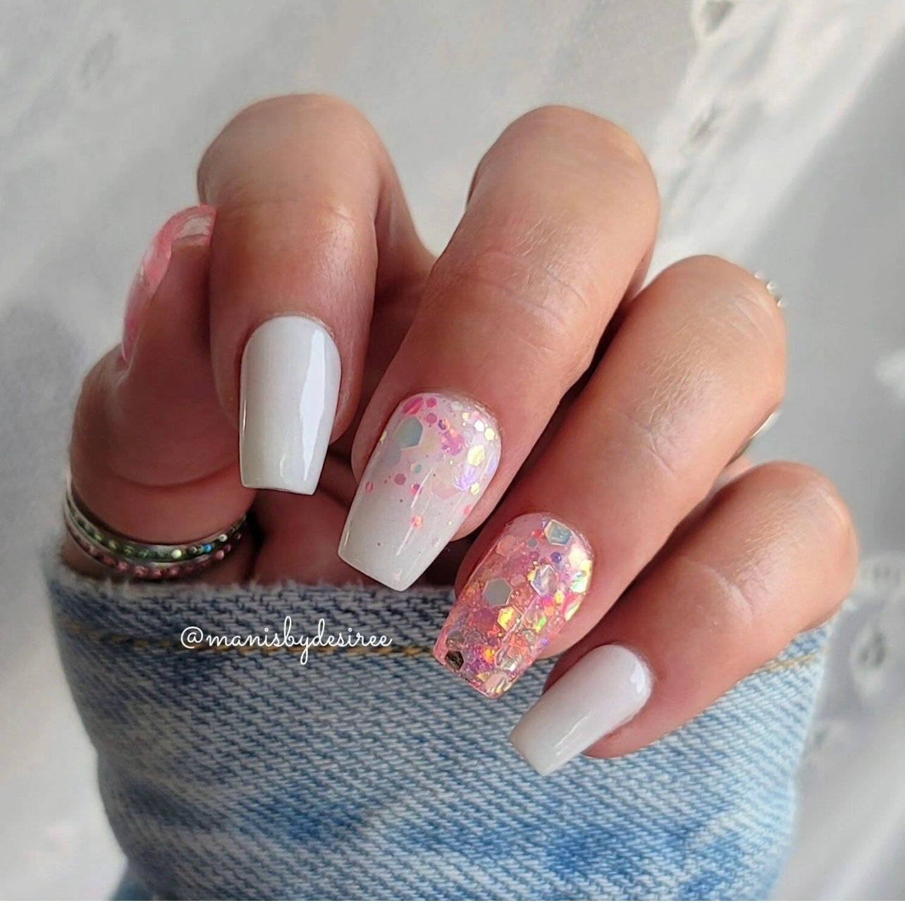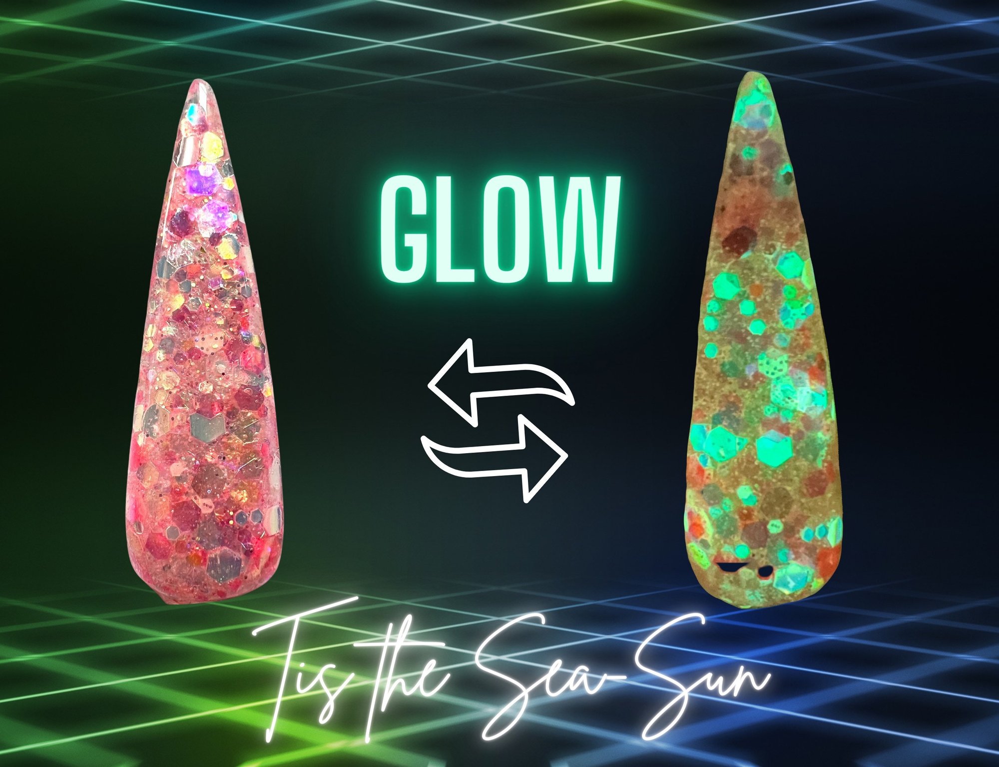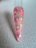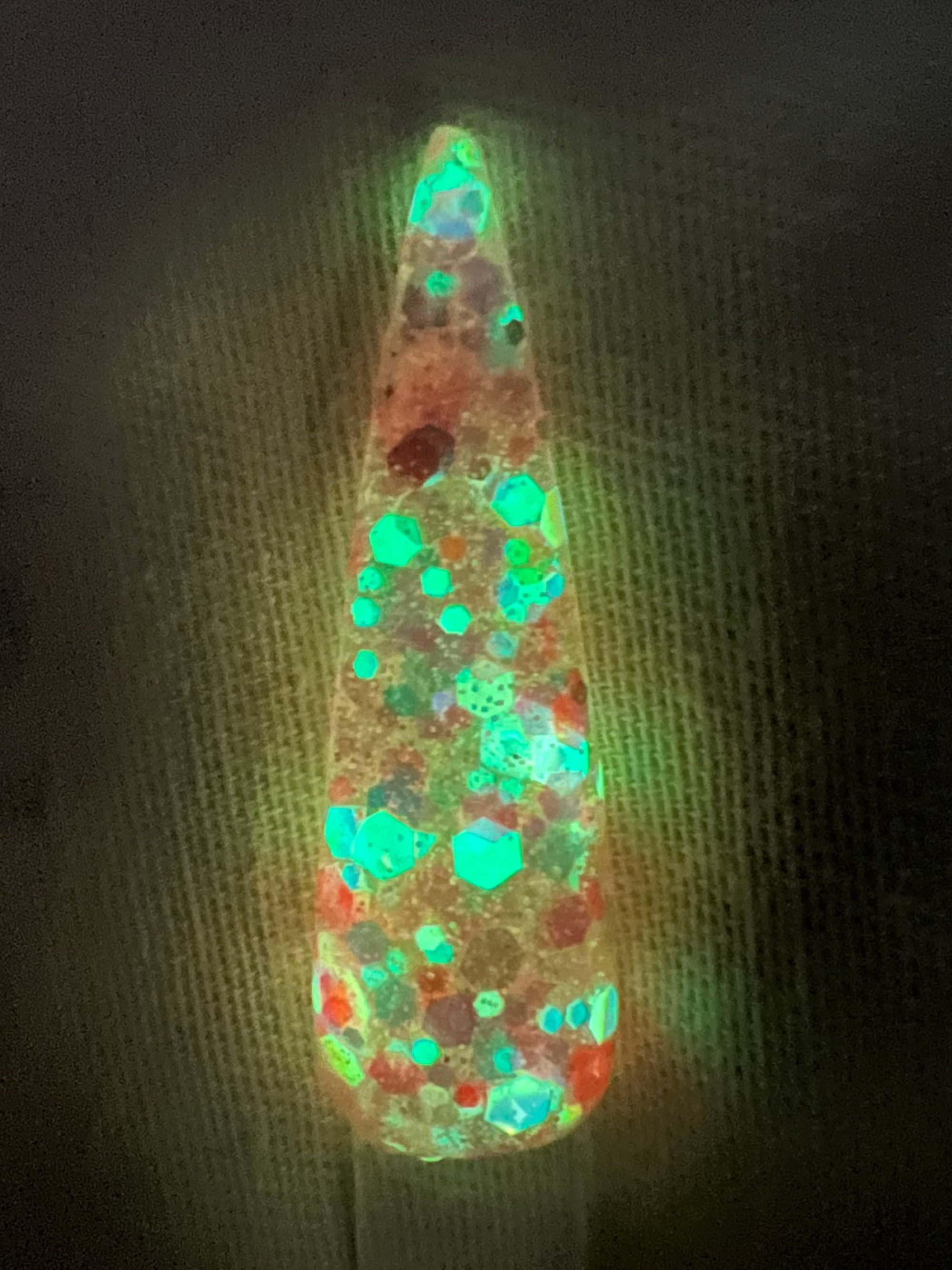 This beautiful iridescent pink glitter dip also glows!!