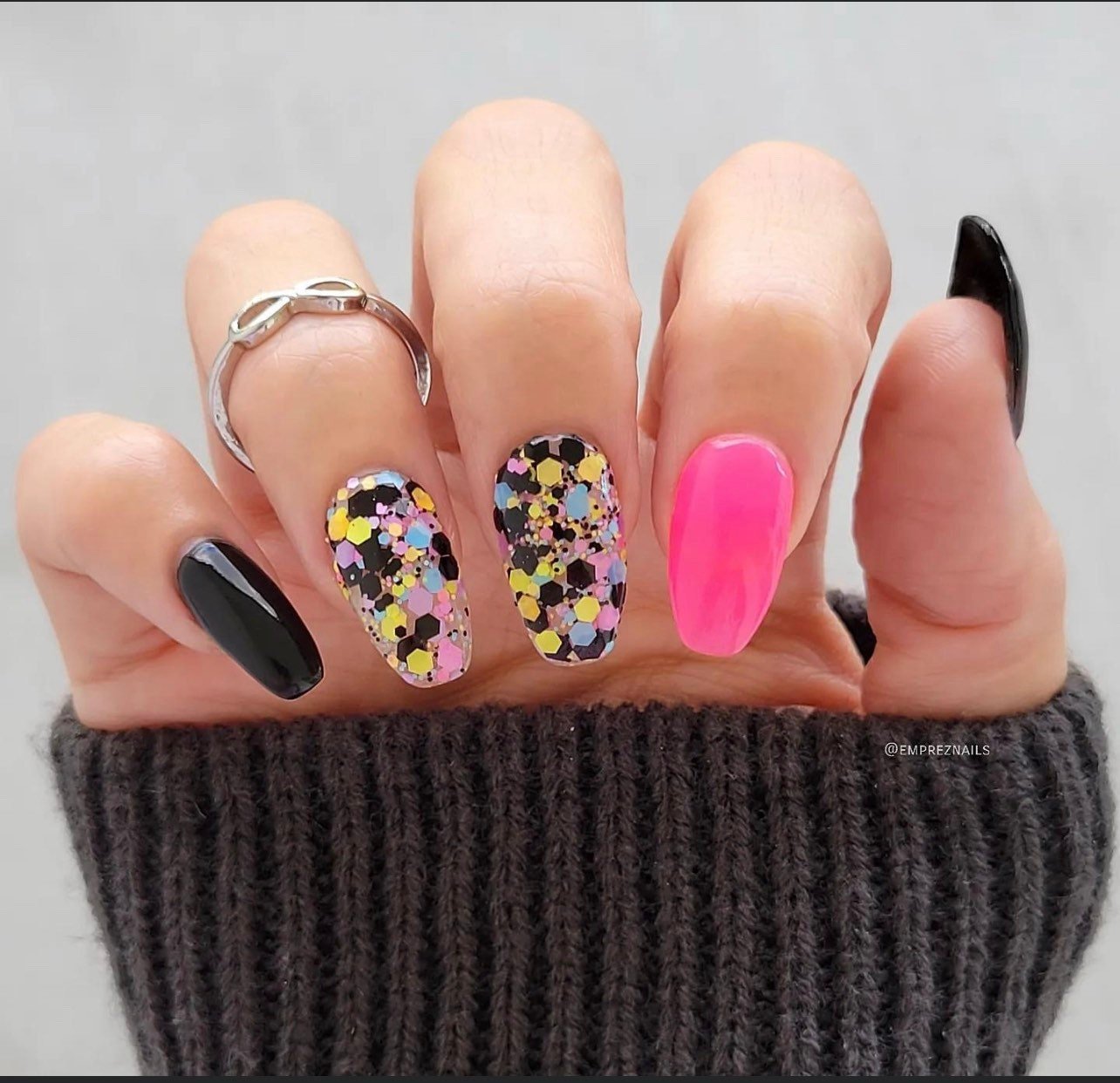 Valley Girl Punk is a fun chunky neon glitter dip! A fun twist on a bright neon dip, we’ve added black glitter to give it a little bit of edge 🖤