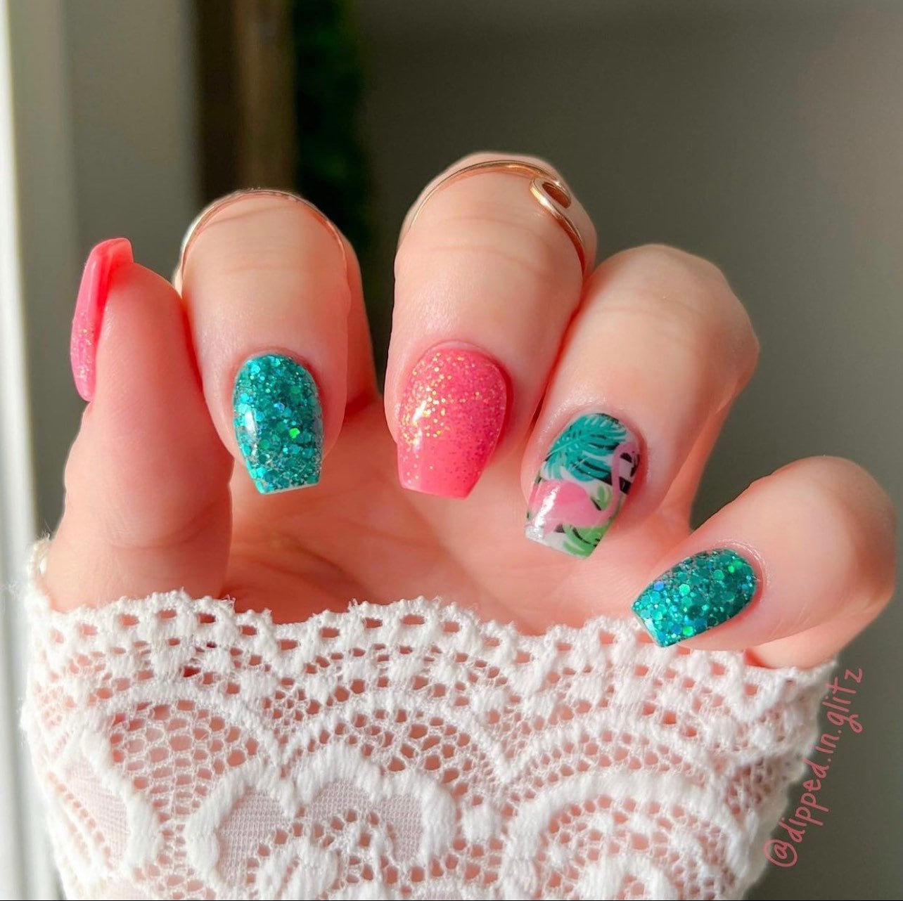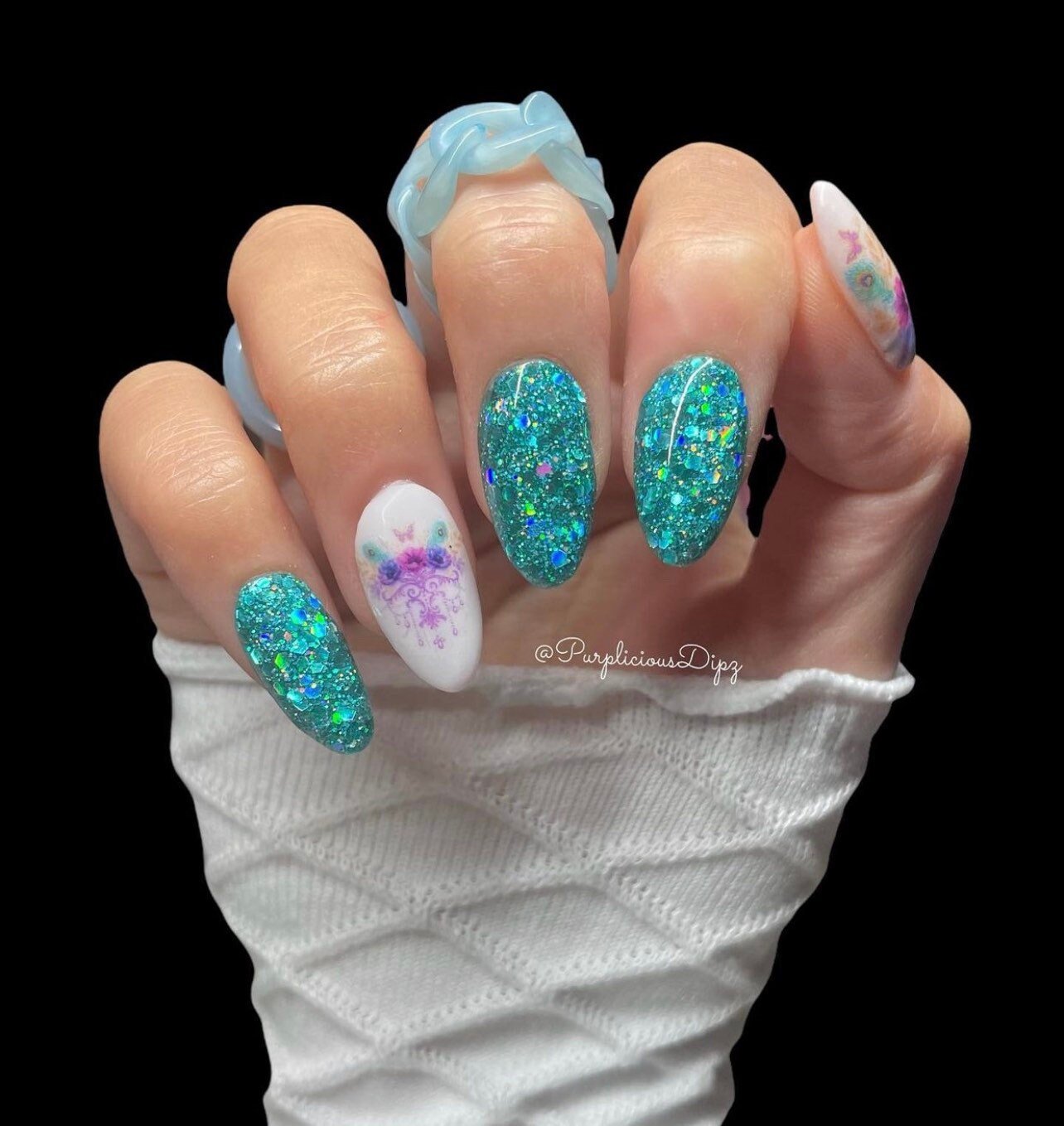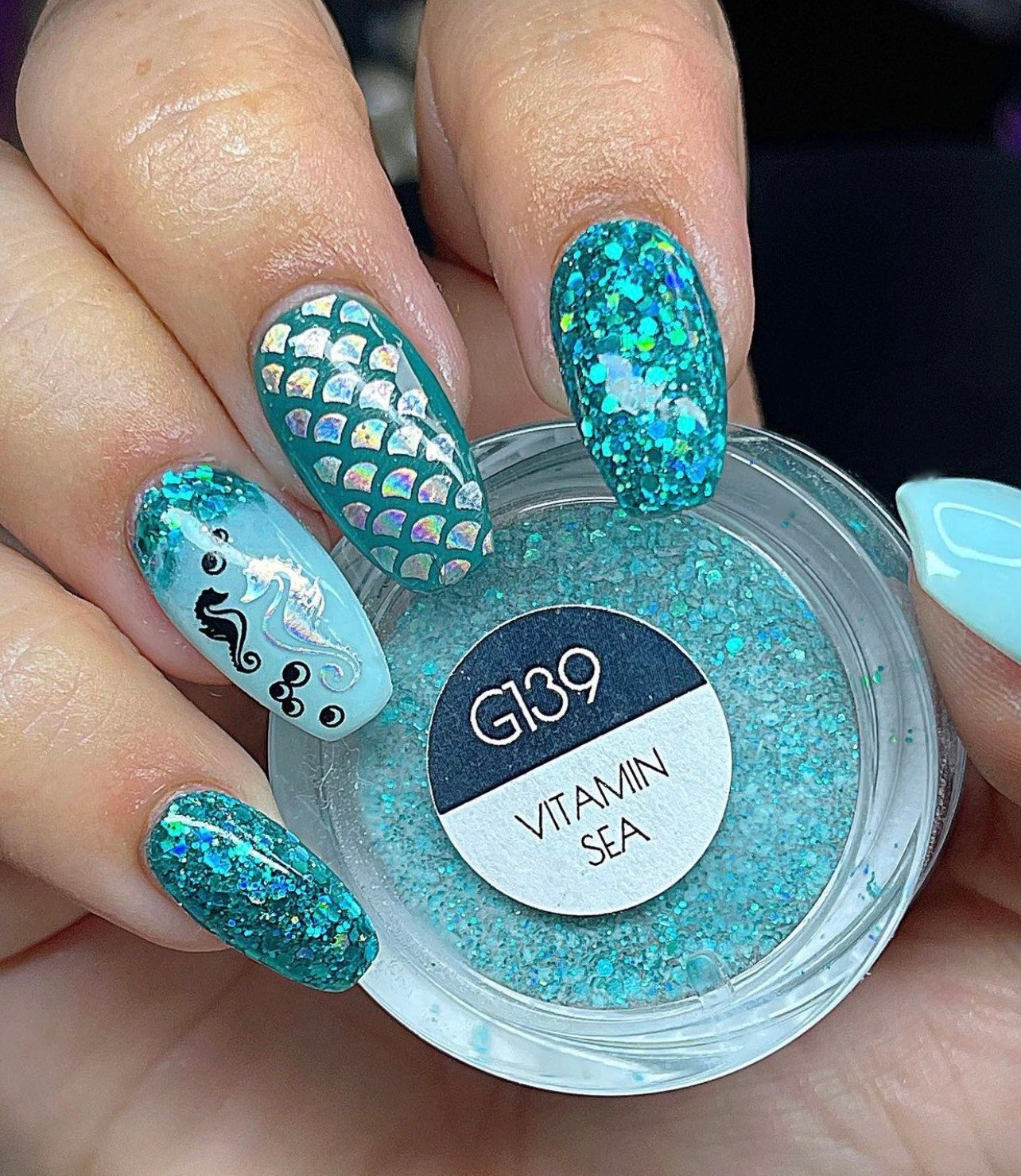 This aqua teal dip sparkles and shines with holographic glitter! Everyone deserves some vitamin “sea” in their life!