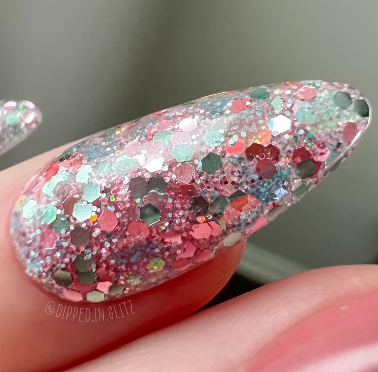 A chunky spring glitter mix that has our two favorite colors for the season!